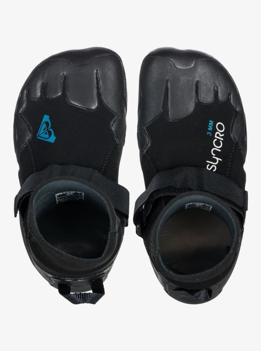 Los escarpines de surf con punta redonda para mujer 3mm Syncro en color negro (True Black) de Roxy han sido confeccionados con Neopreno Freemax.