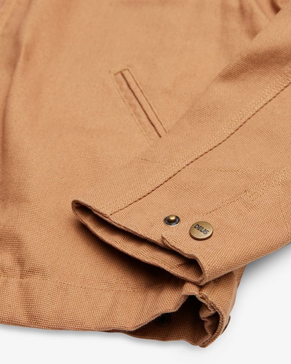 La chaqueta para hombre Address Workwear Jacket en marrón (Dijon) de Deus Ex Machina está confeccionada con 100% lona de algodón.
