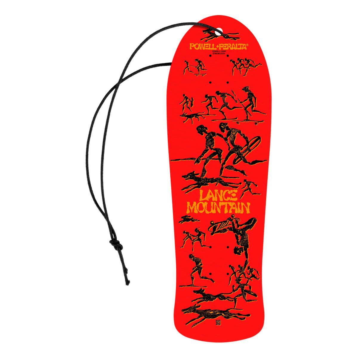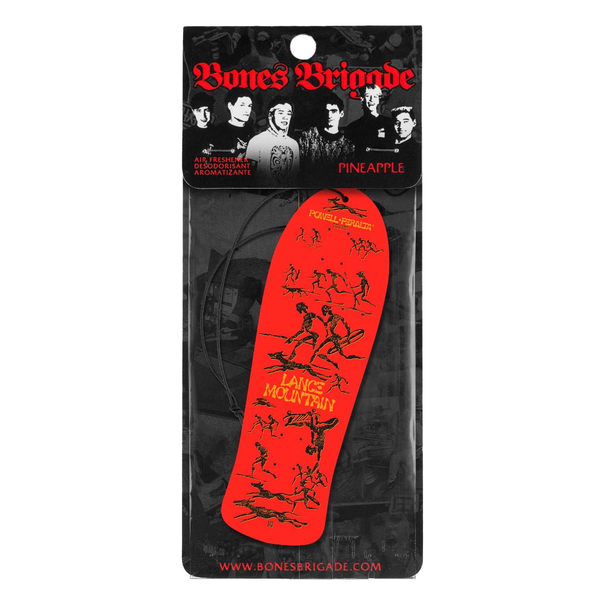 Este ambientador de coche cuenta con un duradero olor a piña, junto con la forma y la impresión gráfica de la Tabla de Skate Lance Mountain Red de la Exclusiva Colección Bones Brigade Series 15 de Powell Peralta.