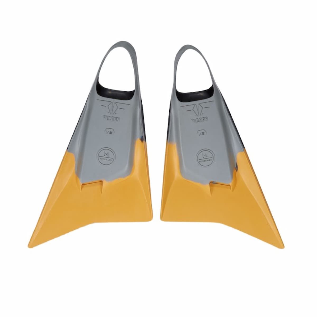 Aletas Pride Vulcan V2 colro Gris Oscuro/Amarillo Spectra/Gris Claro con potencia, control y confort para olas potentes. Diseñadas para bodyboarders expertos.