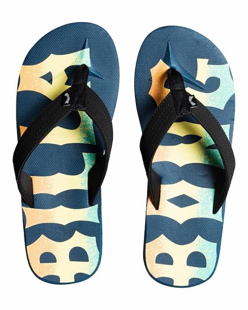Las chanclas para hombre All Day Theme Multicolor tienen una etiqueta de garantía Billabong cosida en la tira del empeine.