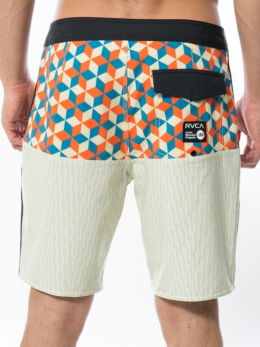 Este boarshort surfero cuenta con 48cm (19") de largo, diseño geométrico del artista ANP Barry McGee, cierre de velcro, cintura en contraste ajustable mediante cordón, bragueta de cremallera, un bolsillo trasero con solapa, cierre de cremallera y agujero de drenaje, junto con un parche de RVCA x ANP (Artist Network Program) tejido en el bolsillo.