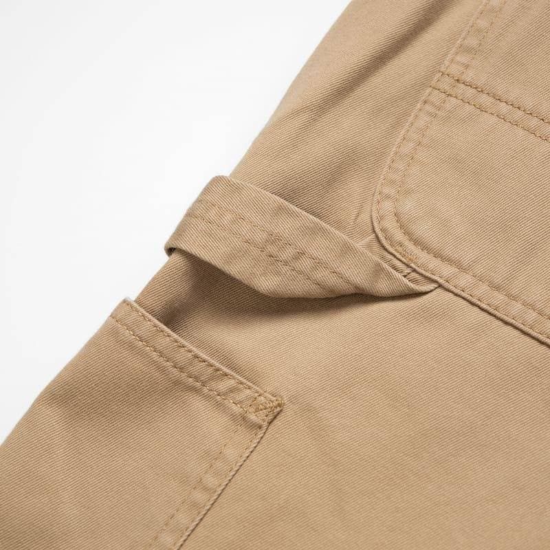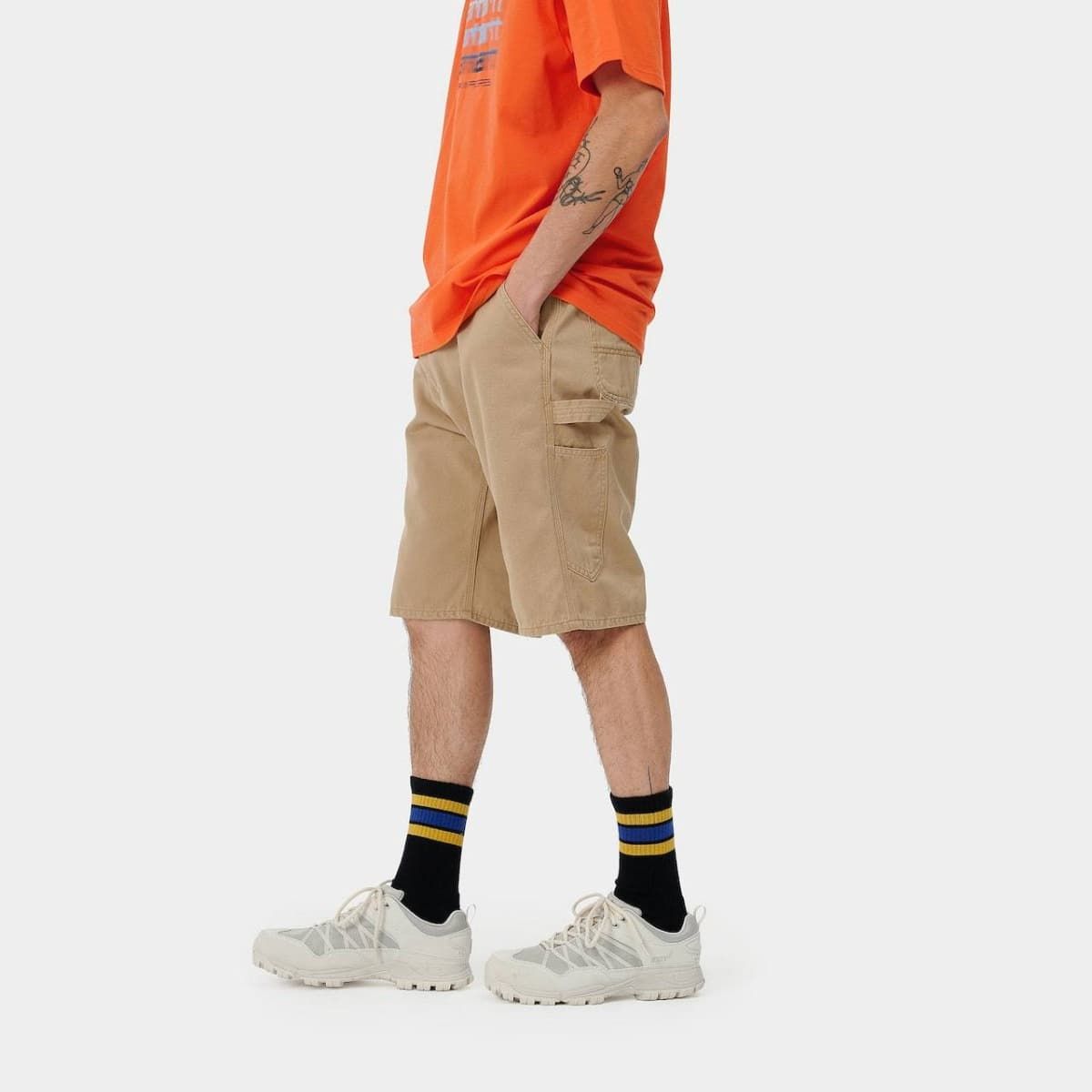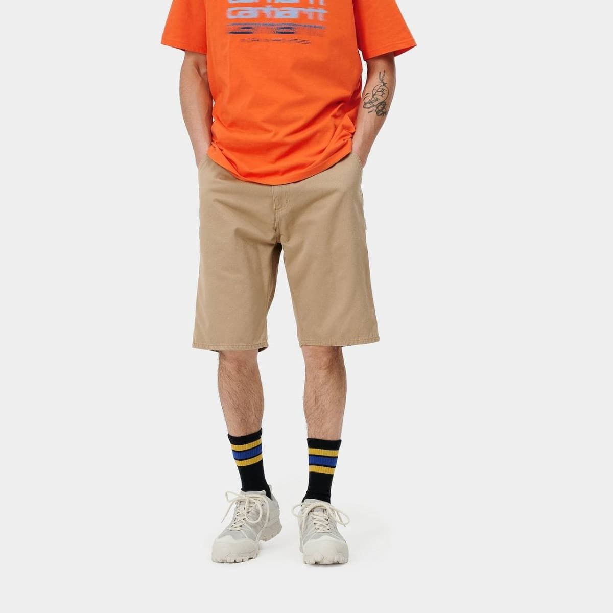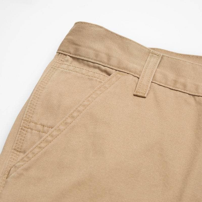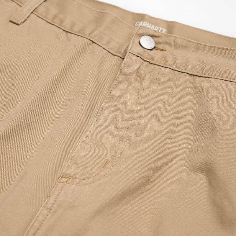 Estos pantalones cortos de corte regular y tiro normal, inspiradas en el clásico pantalón de trabajo de Carhartt WIP, cuentan con bolsillos delanteros y traseros, bolsillos para herramientas, presilla para martillo, costuras reforzadas, cierre de botón, bragueta con cremallera y una etiqueta con el logo de Carhartt WIP cosida en la parte posterior.