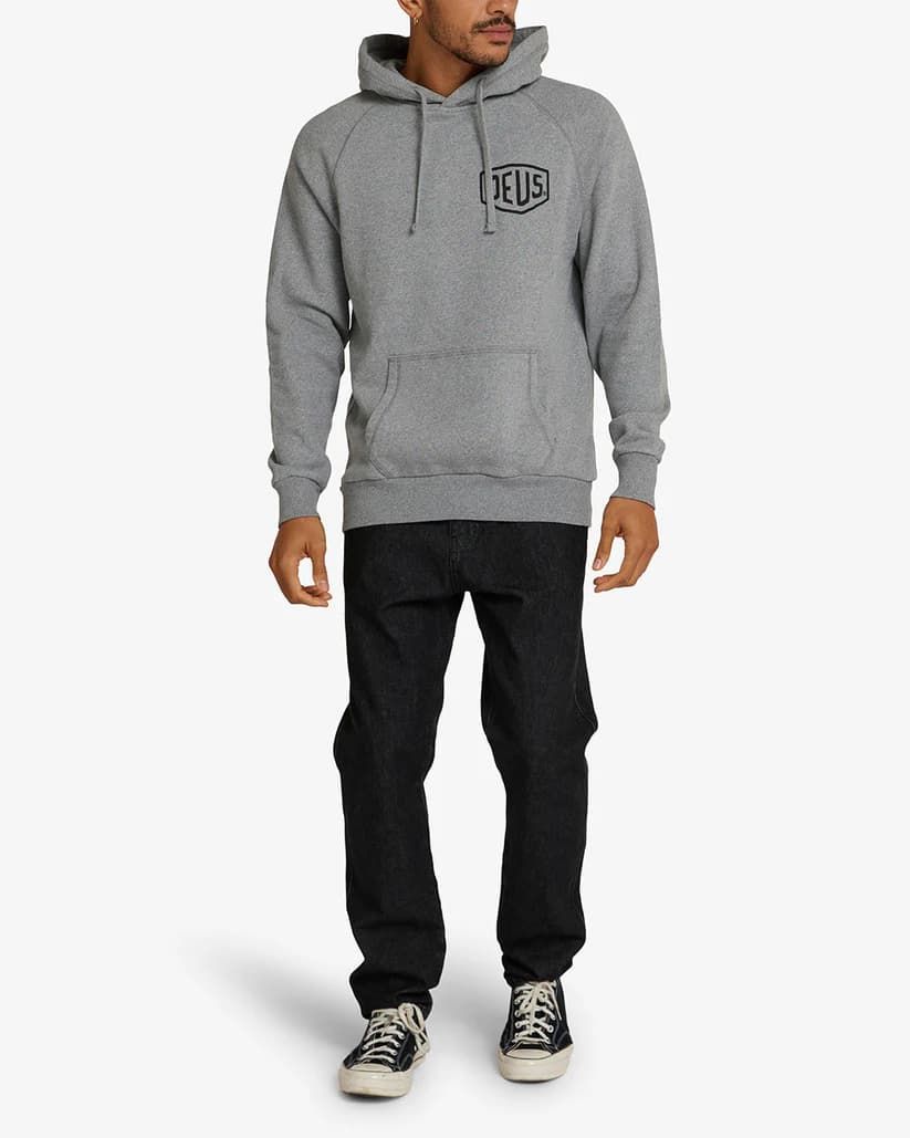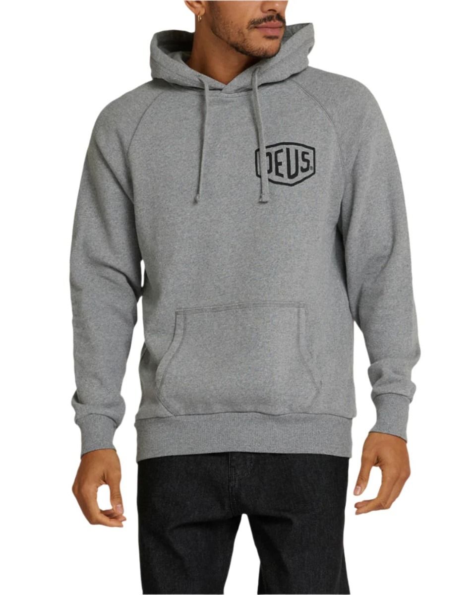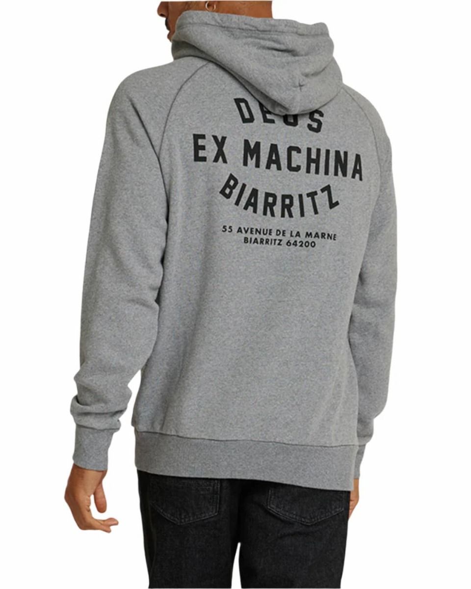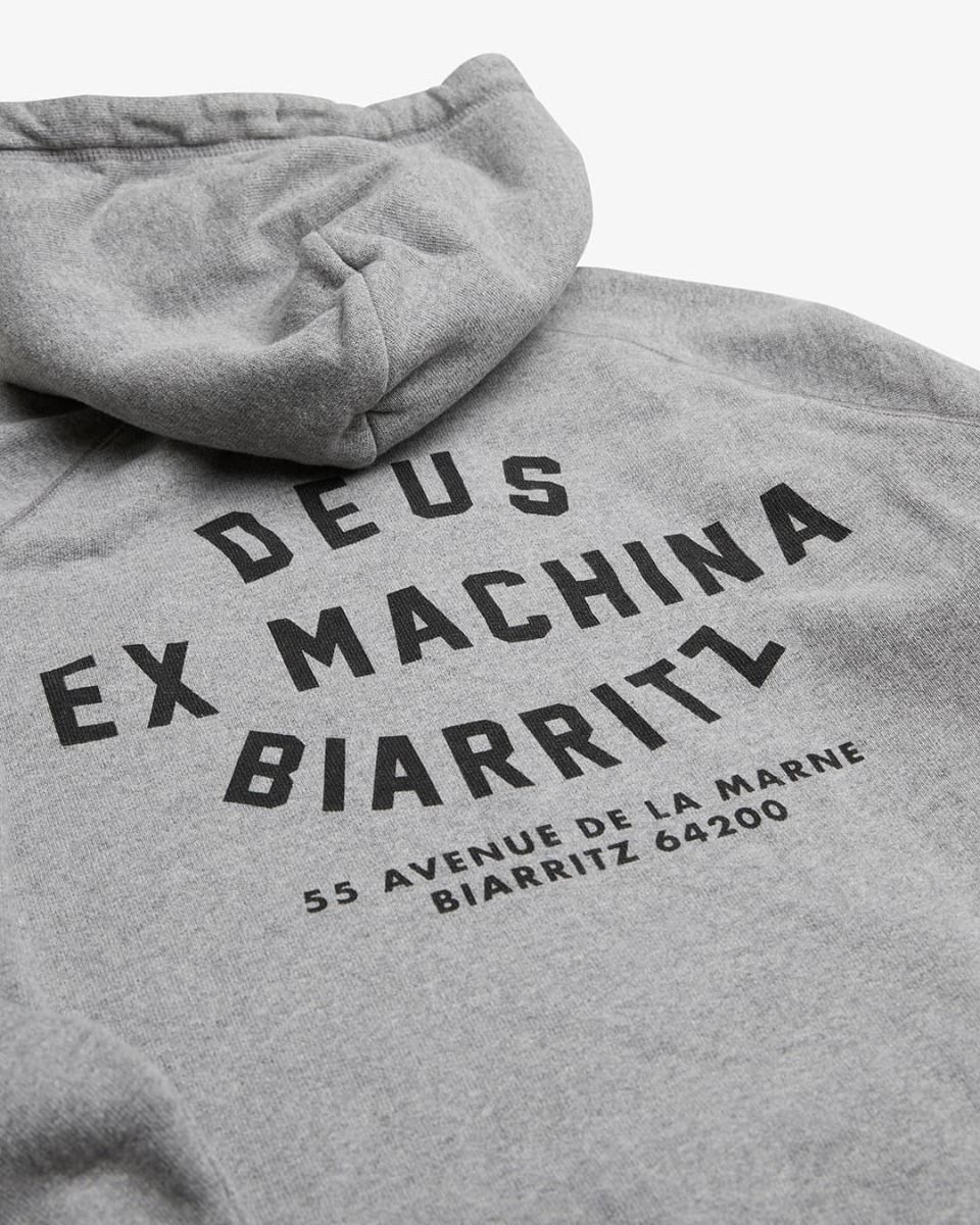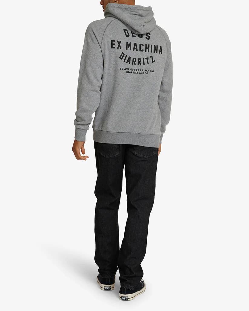 La sudadera con capucha para hombre Biarritz Address en gris (Grey Marle) de Deus Ex Machina está confeccionada con tejido de algodón cepillado (350g).