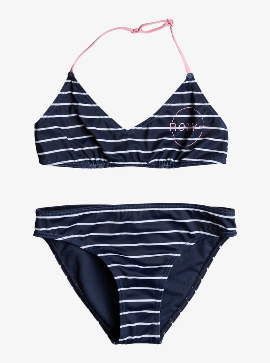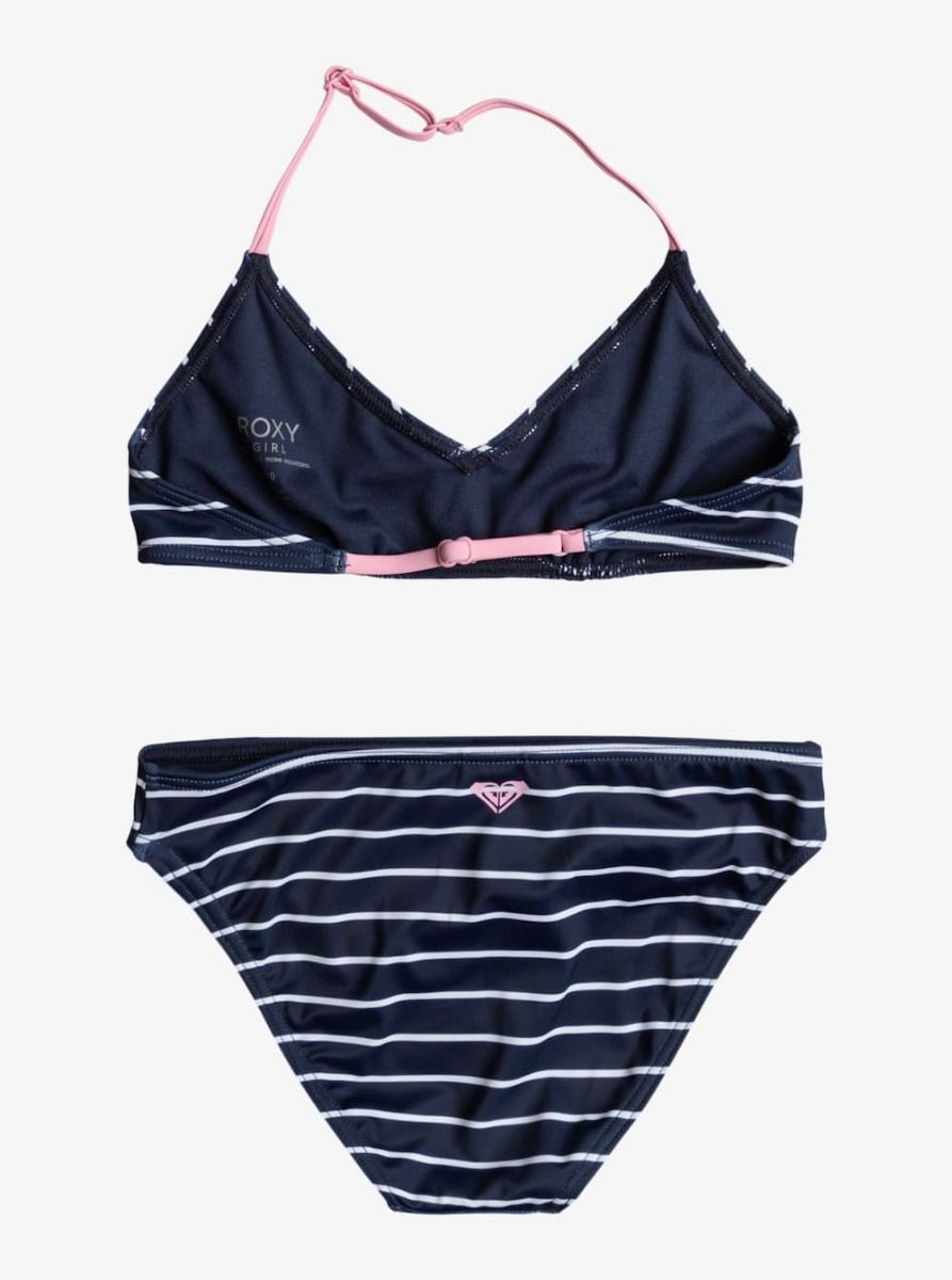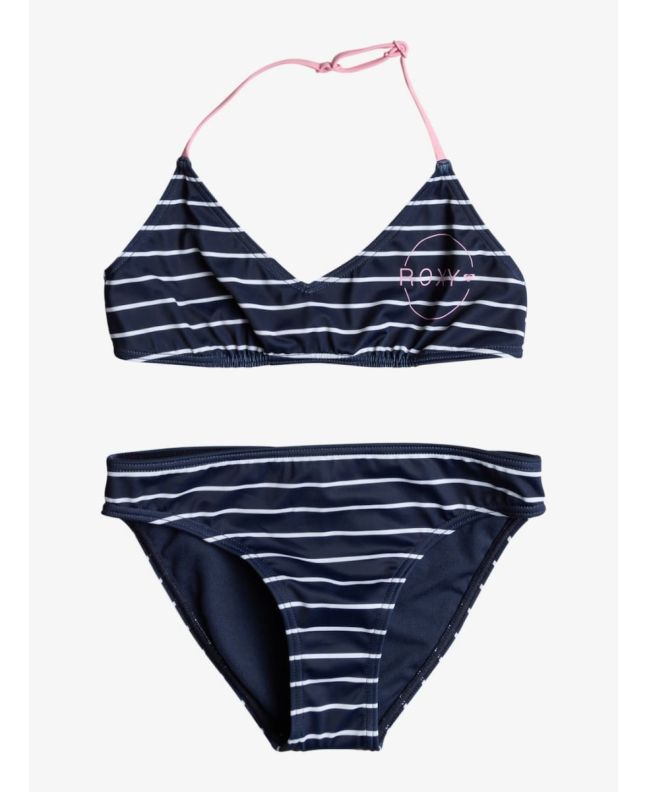 Conjunto de Bikini Triangular Roxy Girl Bico Basic Stripe en color azul marino para niña (6-16 años)