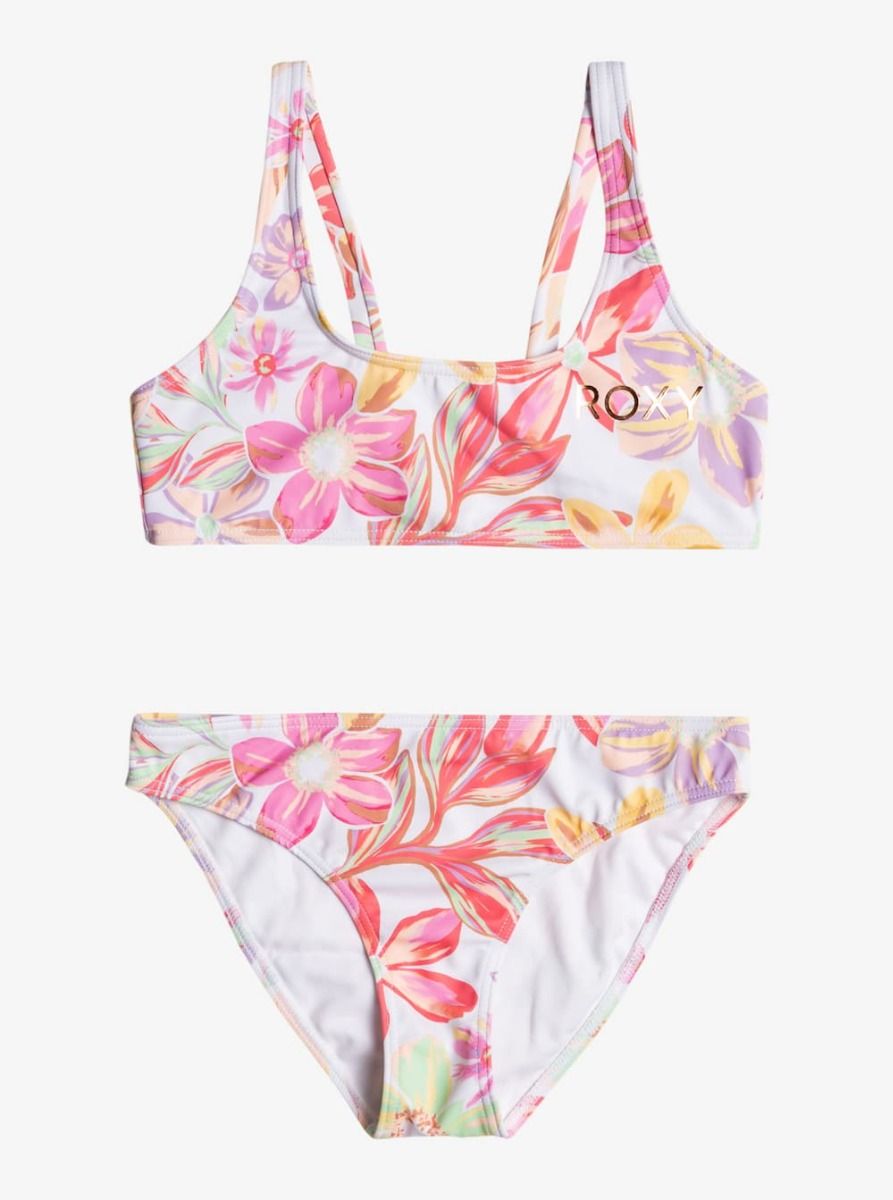 Conjunto de Bikini Bralette Roxy Tropical Time Girl en color blanco floral para niña (7-16 años)