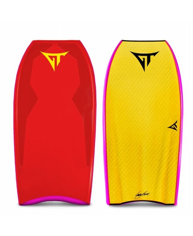 Tabla de Bodyboard GT Boards Mega-T Crescent Tail en color rojo y amarillo