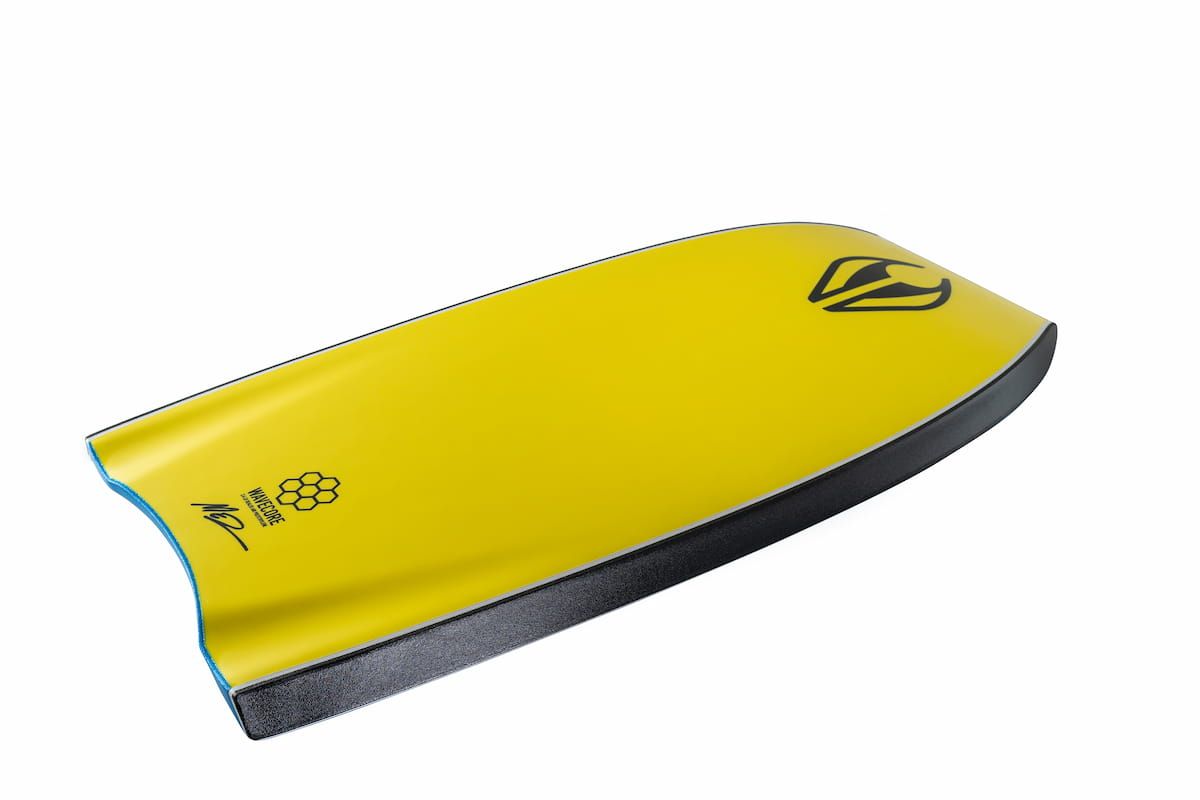 Esta tabla de body, muy fácil de manejar, cuenta con core extruido de 2.4lb PE (polietileno) para ofrecerte un núcleo de densidad media con una flexión más suave, single stringer de fibra de vidrio, canales, cola creciente, bulbos en en el nose y Slick HDPE.