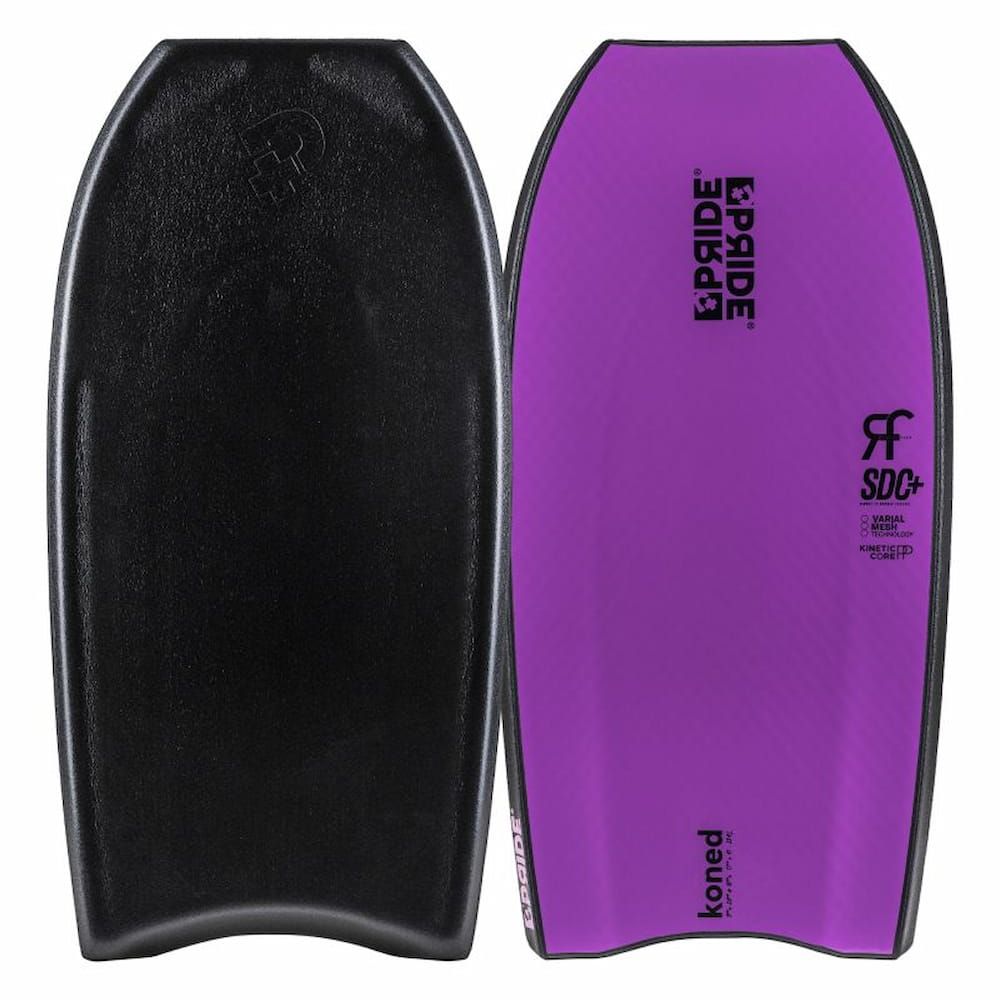 Además, con una cola estrecha, un wide-point bastante alto, un outline curvo y la tecnología SDC + la tabla de bodyboard Pride Koned PP Radial Flex SDC+ Varial Negro-Púrpura te ofrece un control inigualable en secciones poderosas, una liberación súper rápida en las rotaciones y un gran volumen. La Koned es sin duda el boogie perfecto para surfear tubos con estilo.