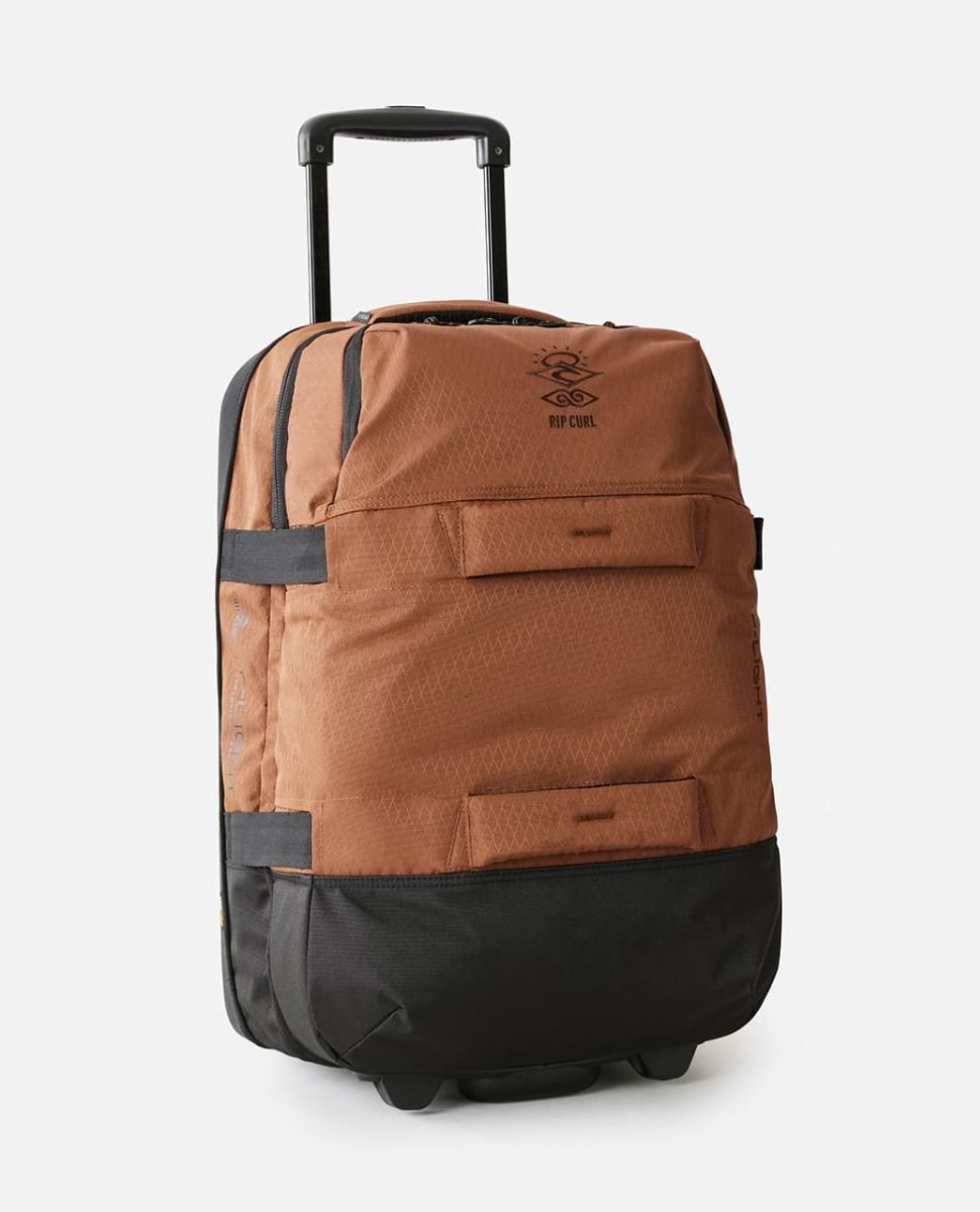 La maleta de cabina con ruedas F-Light Transit Travel Bag 50L Searchers en color marrón (Brown) de Rip Curl está confeccionada con 100% poliéster reciclado Eco Cordura®.