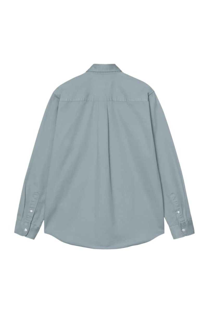 Camisa azulada Carhartt WIP para hombre confeccionada en sarga de algodón, corte regular y logo bordado en blanco cera.