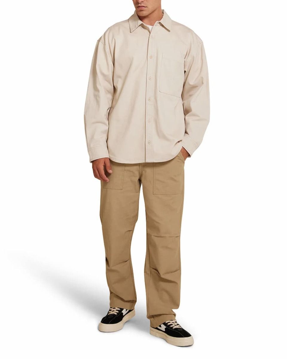 Camisa de manga larga Deus Ex Machina Frizell Twill Shirt en color blanco sucio para hombre