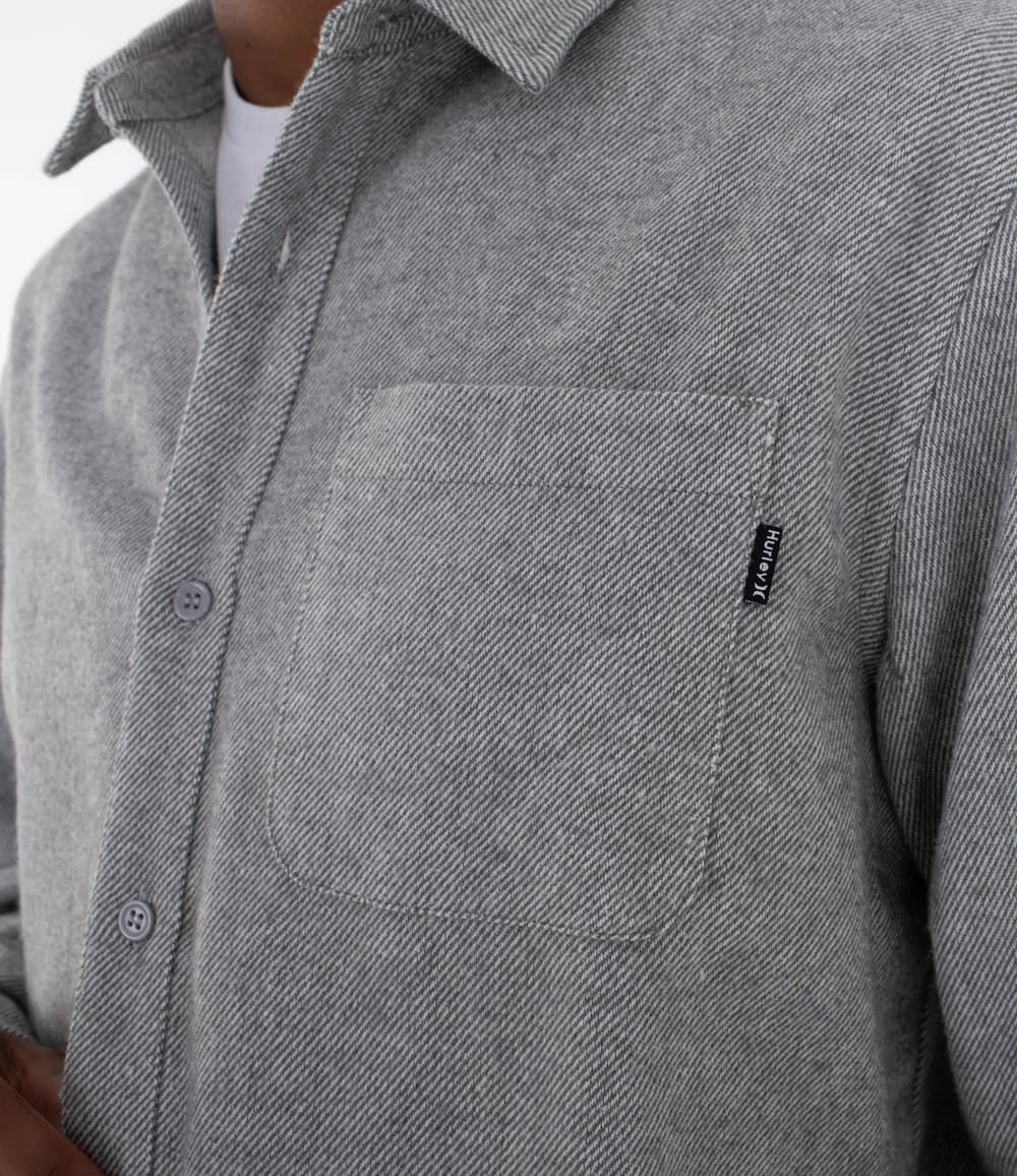 El diseño de la Axe Flannel Shirt mantiene la esencia de las camisas clásicas: cierre frontal con botones, cuello de punta tradicional y bolsillo en el pecho con etiqueta tejida Hurley. El acabado ligeramente texturizado le da un aire pulido sin perder el carácter relajado. El tejido mezcla de poliéster, algodón y rayón aporta transpirabilidad y resistencia al uso diario.