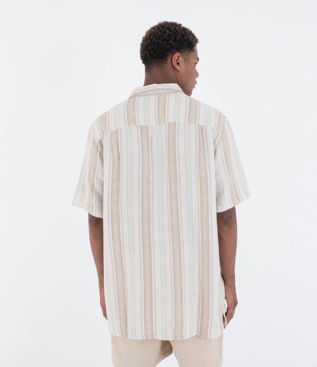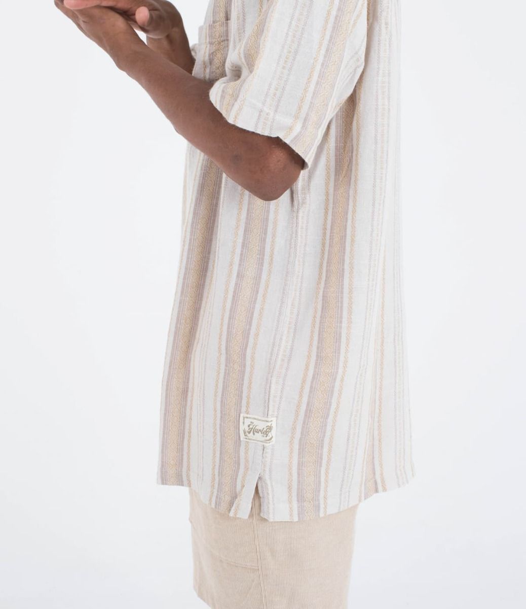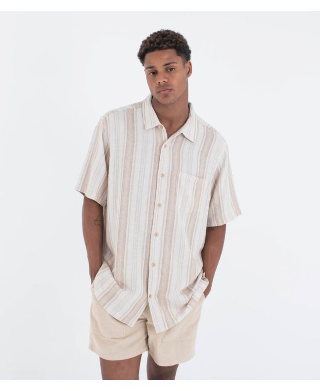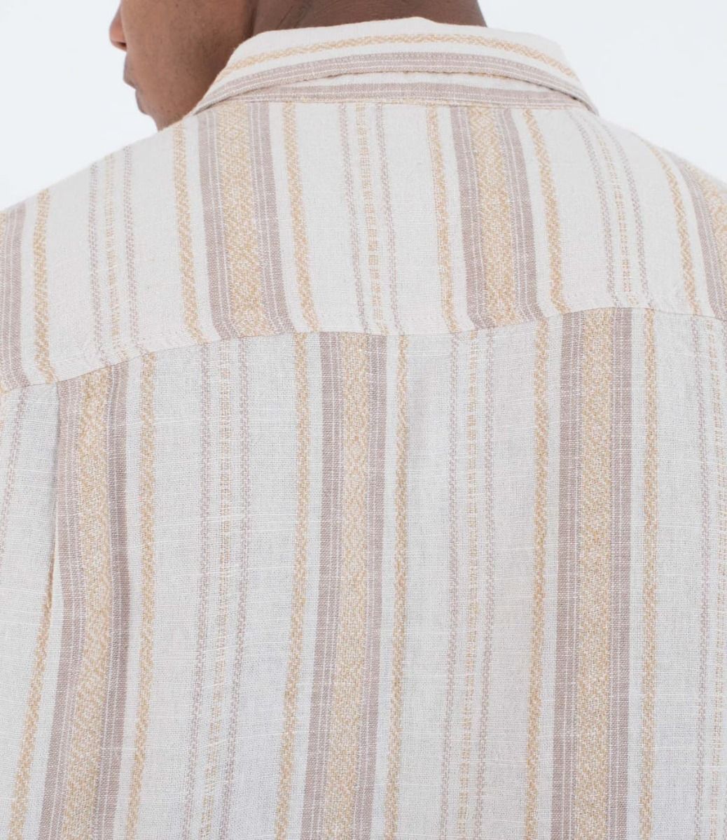 La camisa para hombre Barely Bone Short Sleeve Shirt en tono blanco hueso a rayas (Barely Bone) de Hurley está confeccionada en un tejido en mezcla de 51% lino y 49% rayón, lo que te garantiza frescura y comodidad en los días más cálidos.