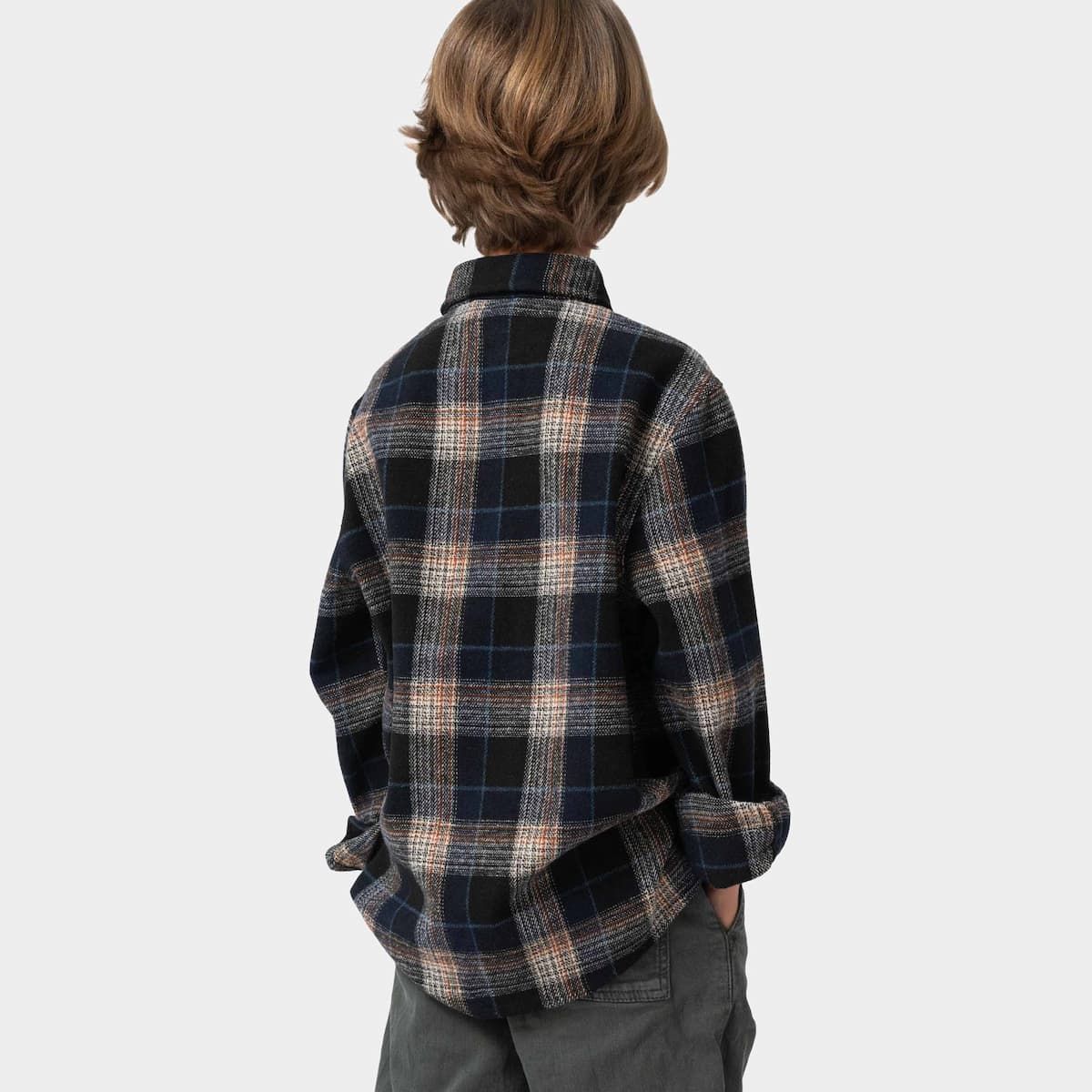 Fabricada en franela de peso medio 100% poliéster, esta camisa ofrece un tacto suave y una buena dosis de abrigo para los días más frescos. El corte recto con dobladillo curvo, el cierre de botones en la parte frontal y los puños abotonados garantizan comodidad y libertad de movimiento en el cole, en el parque o de paseo por la ciudad.