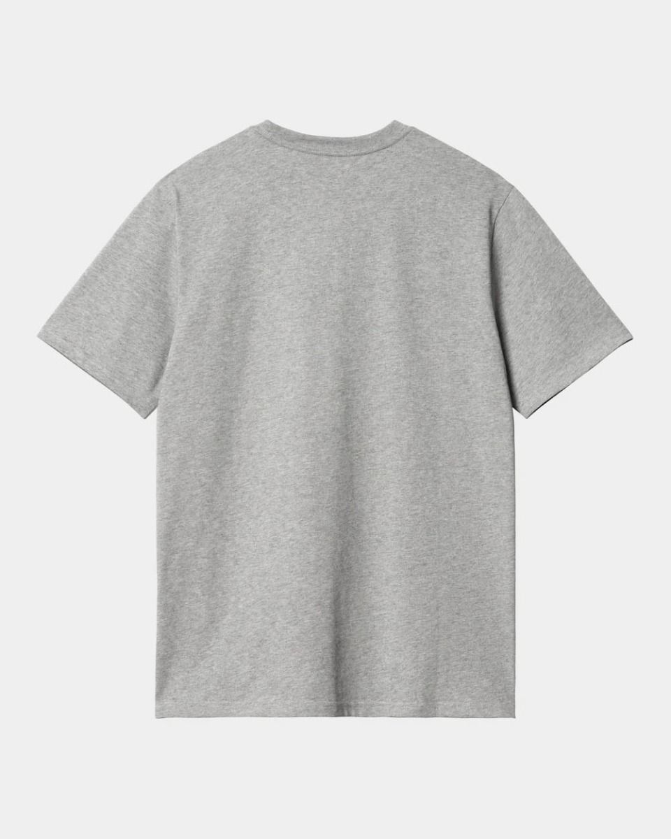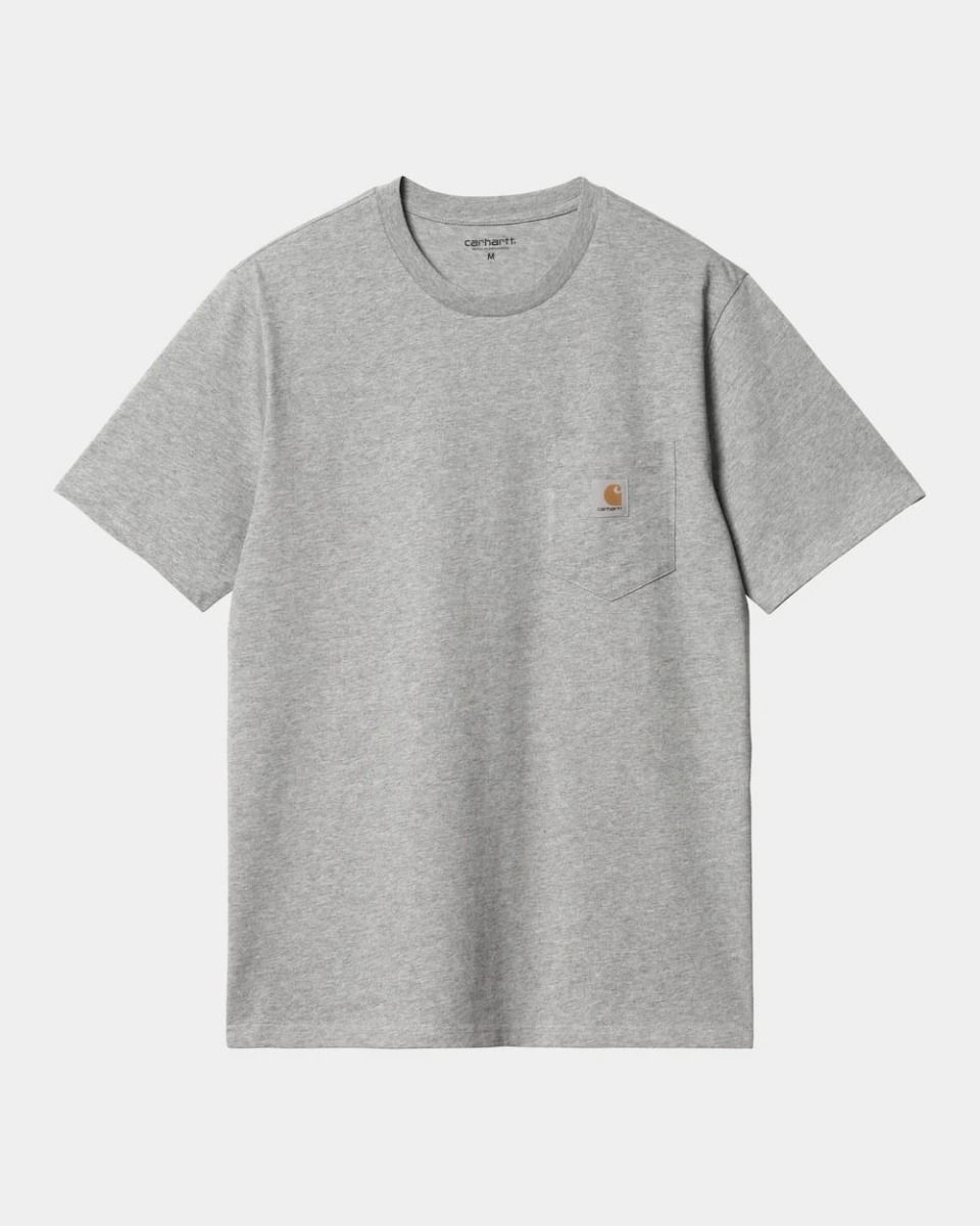 La camiseta con bolsillo para hombre S/S Pocket T-Shirt en tono gris brezo (Grey Heather) de Carhartt WIP está confeccionada con 100% tejido punto jersey de algodón sencillo (190g/m2).