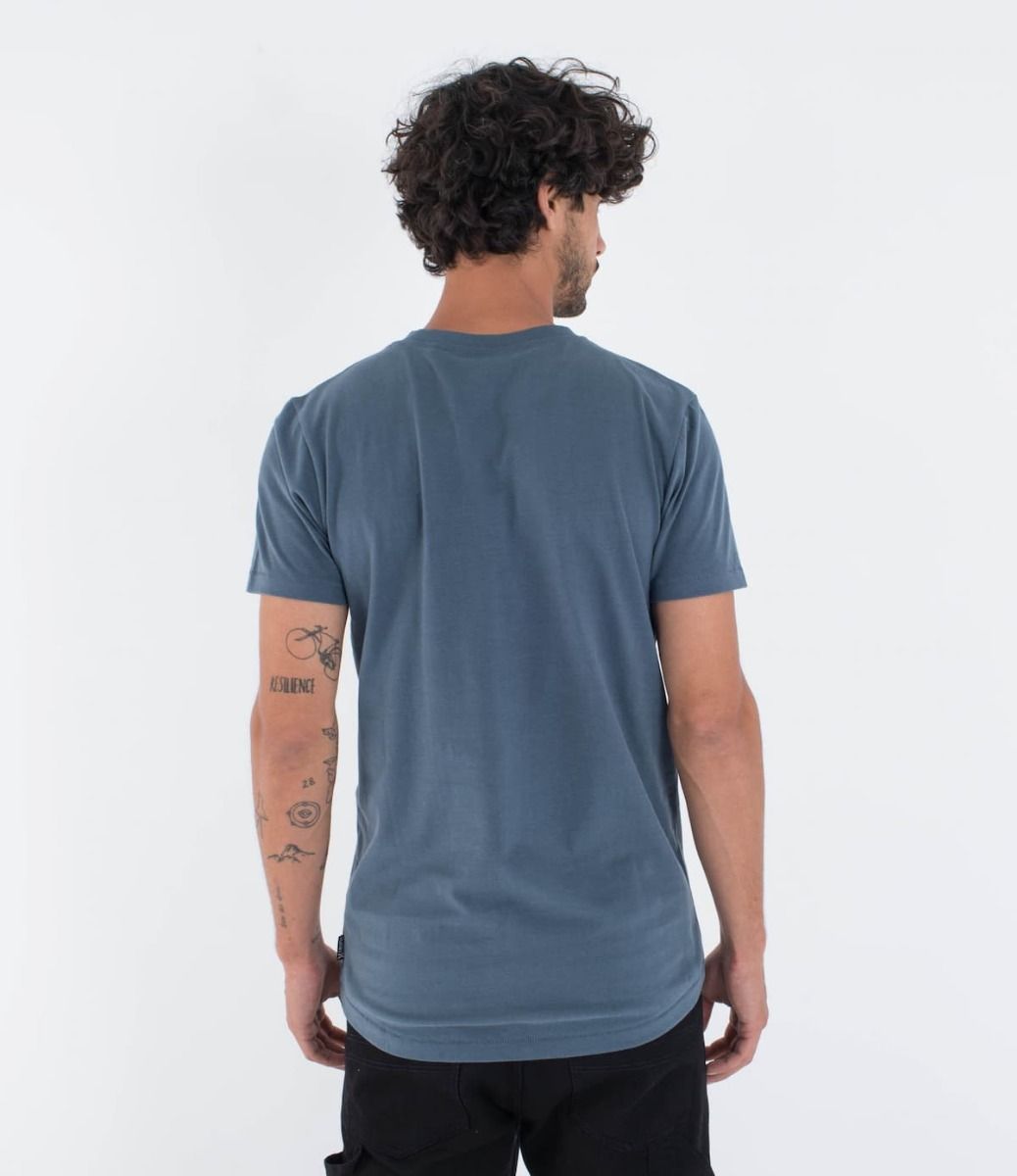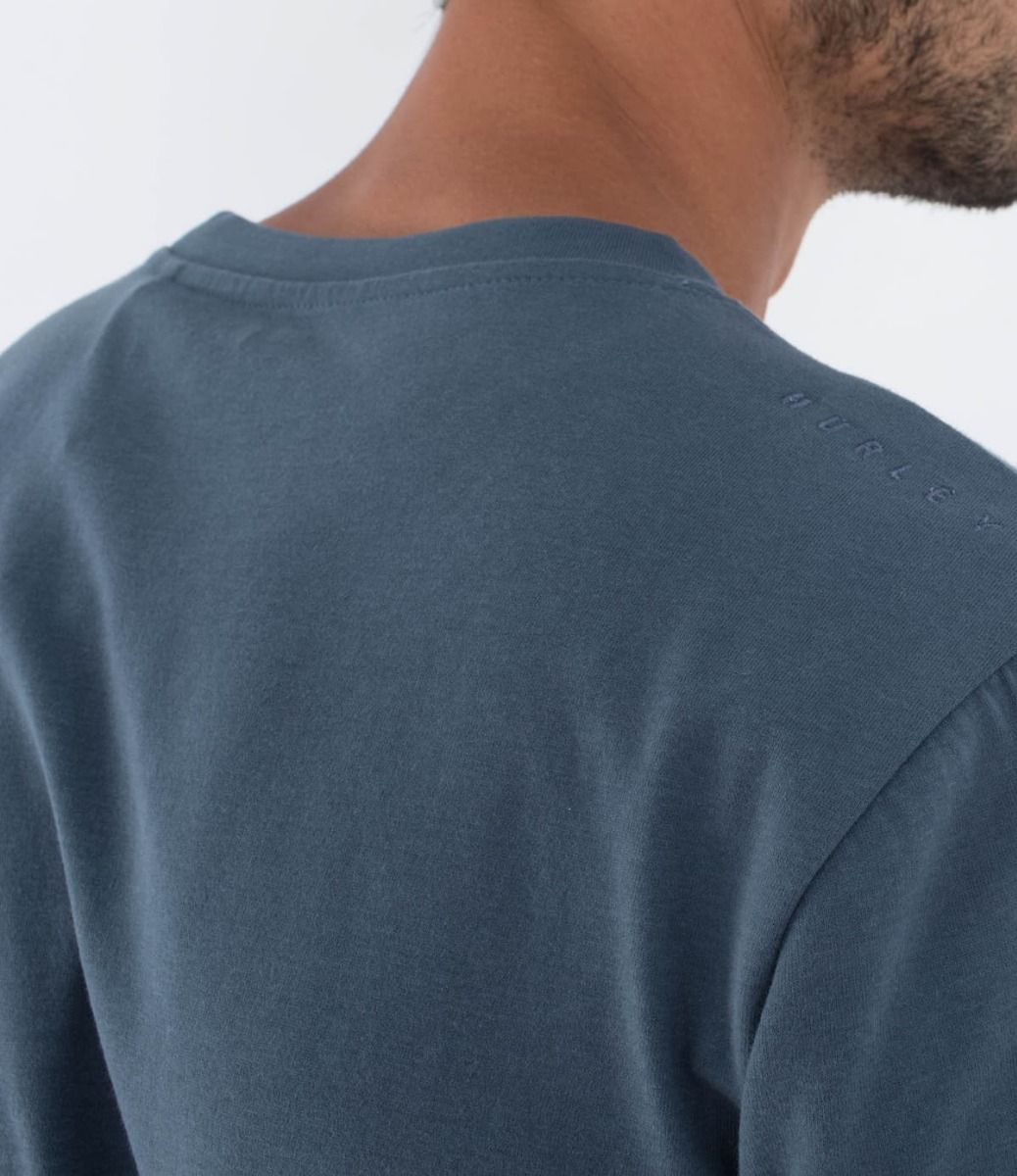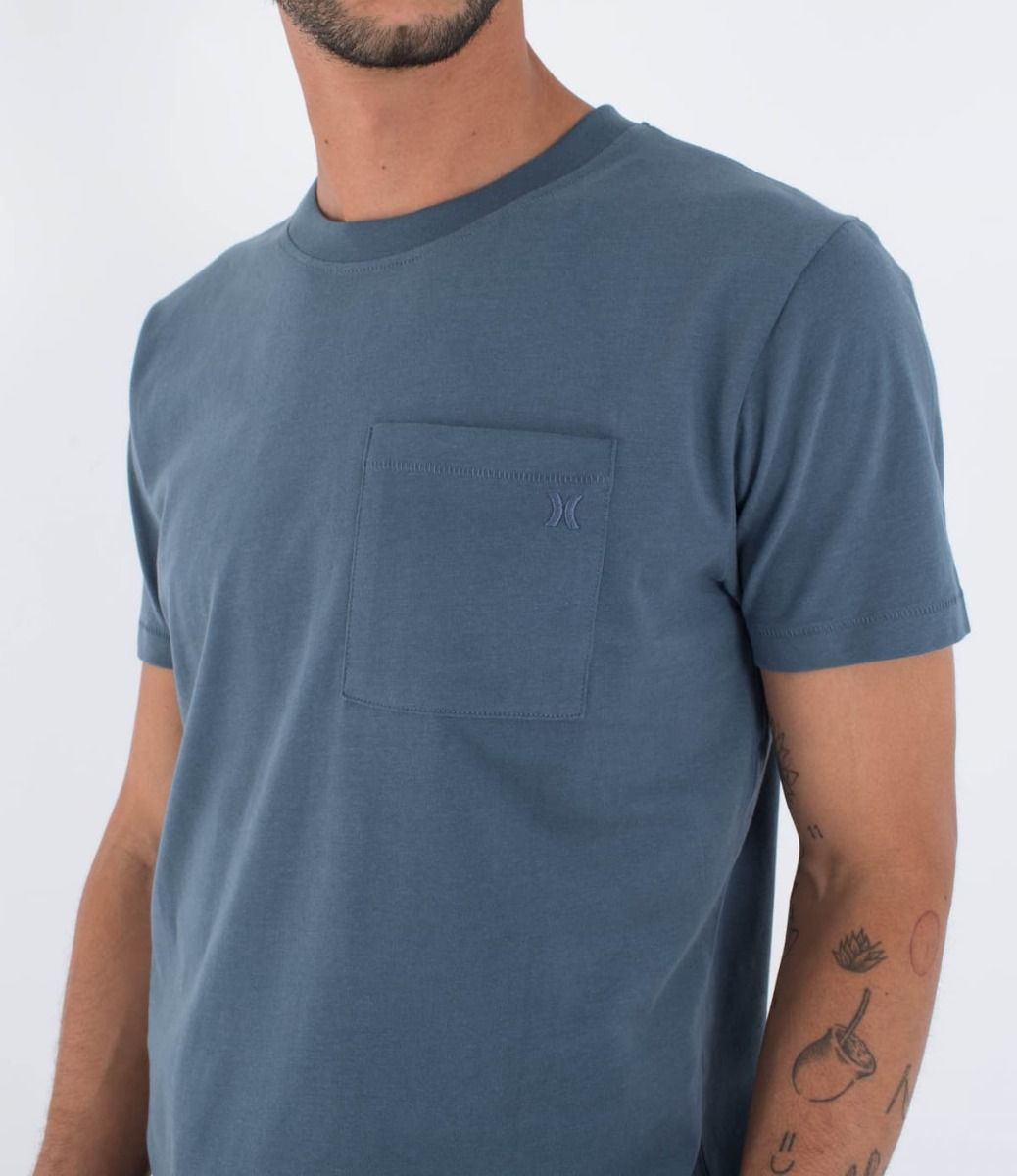 Esta camiseta azulada de ajuste regular para hombre, perteneciente a la Colección Low Tide, viene con cuello redondo, manga corta, junto con un bolsillo en el pecho con el logo de Hurley bordado.