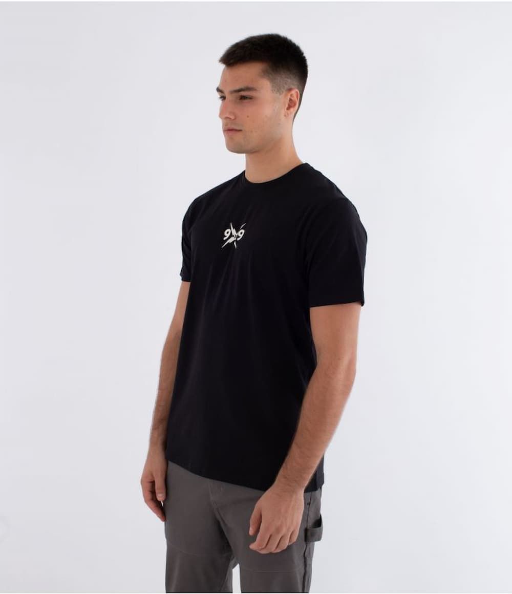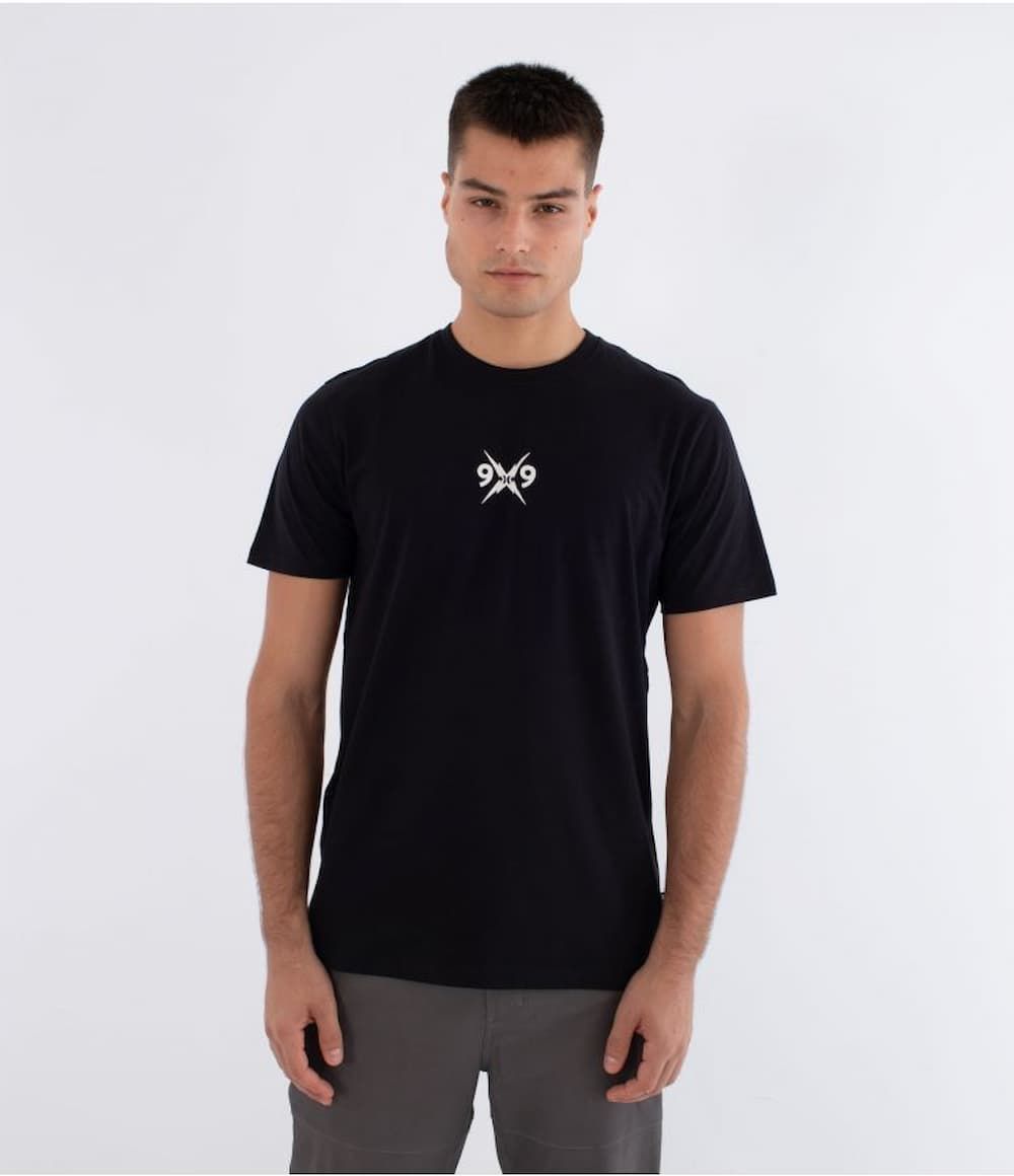 Camiseta Hurley negra con gráficos 999’s VINTAGE, perfecta para looks urbanos con alma noventera.