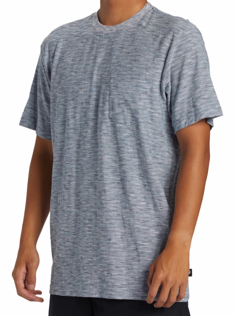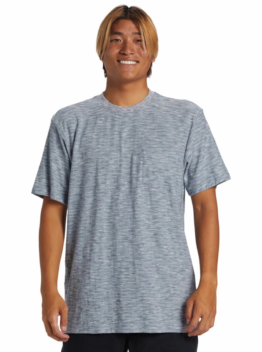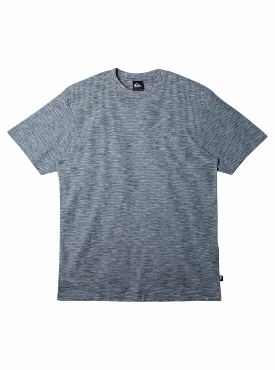 Esta camiseta ecológica azul de 100% algodón orgánico presenta corte clásico y tejido sometido a lavado en prenda para una suavidad excepcional, cuello redondo acanalado, manga corta, un bolsillo en el pecho, perfecto para guardar pequeños objetos esenciales, junto con una etiqueta Quiksilver tejida en la costura lateral.