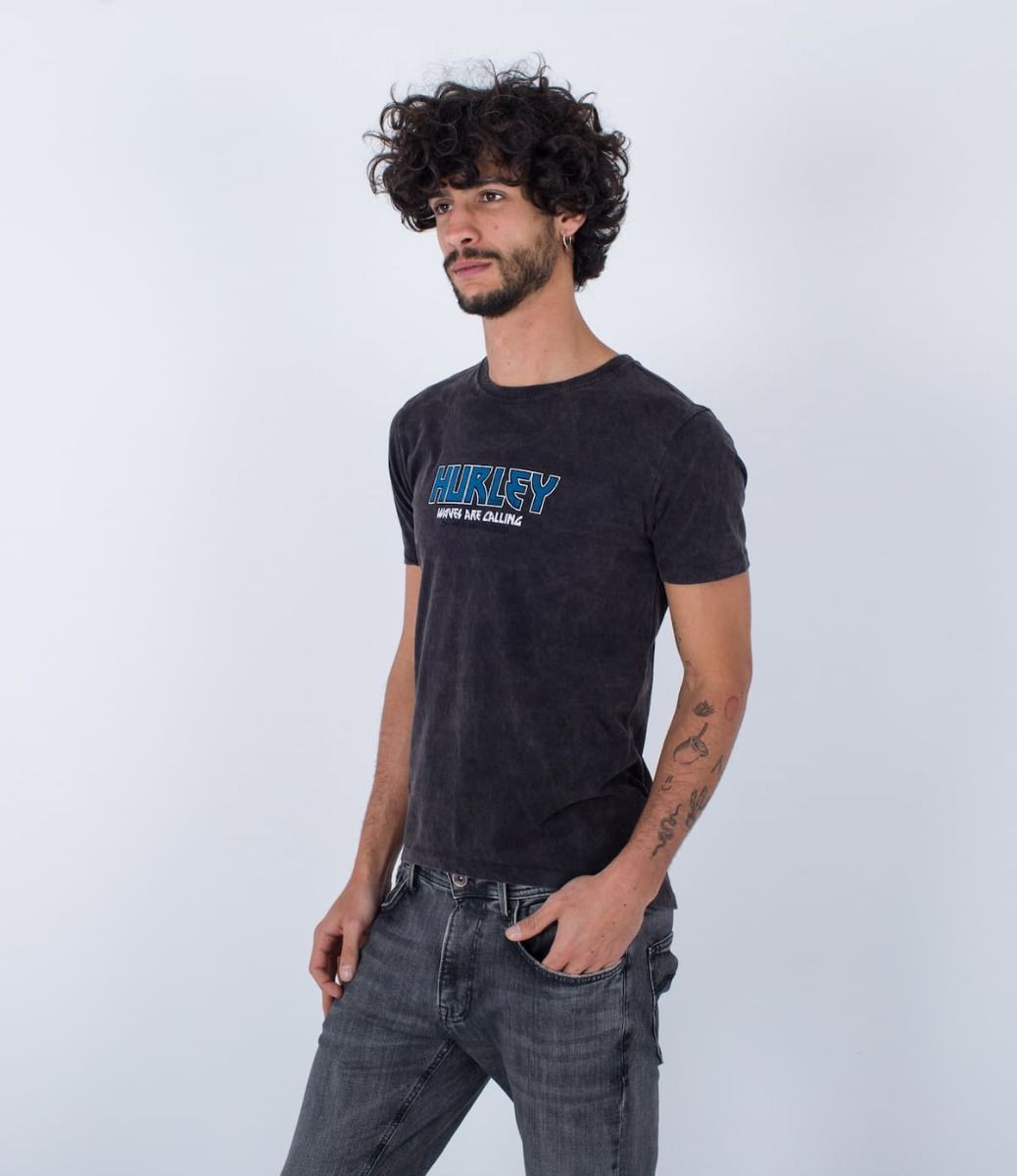 Esta camiseta sostenible, perteneciente a la Colección Oceancare, cuenta con cuello redondo, manga corta, tejido con tratamiento pre-encongido para mayor durabilidad, lavado a la piedra para un aspecto desgastado, serigrafiado "Hurley. Waves are calling" (Las olas te llaman) en la parte delantera y serigrafía del Hurley Tour impresa en la espalda.