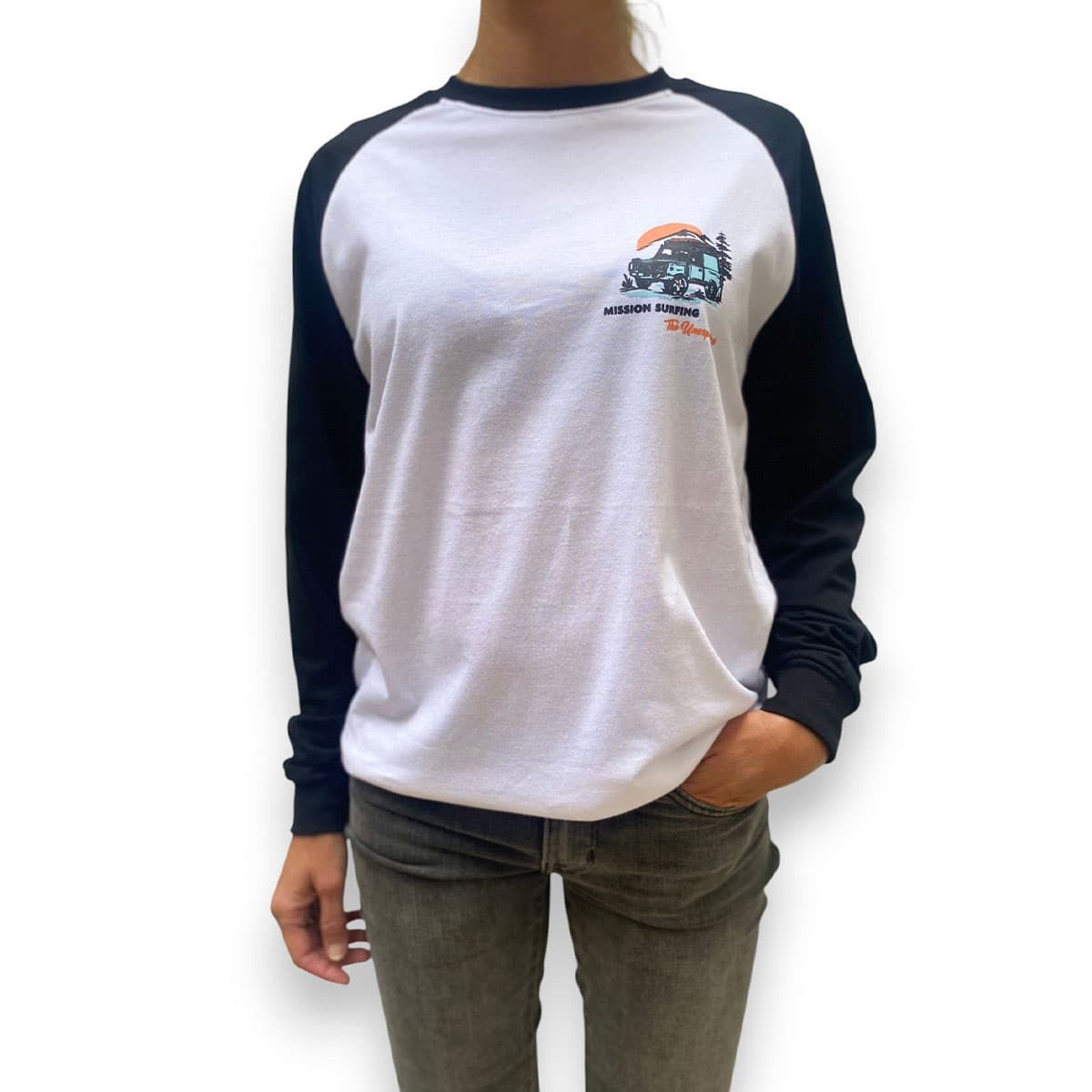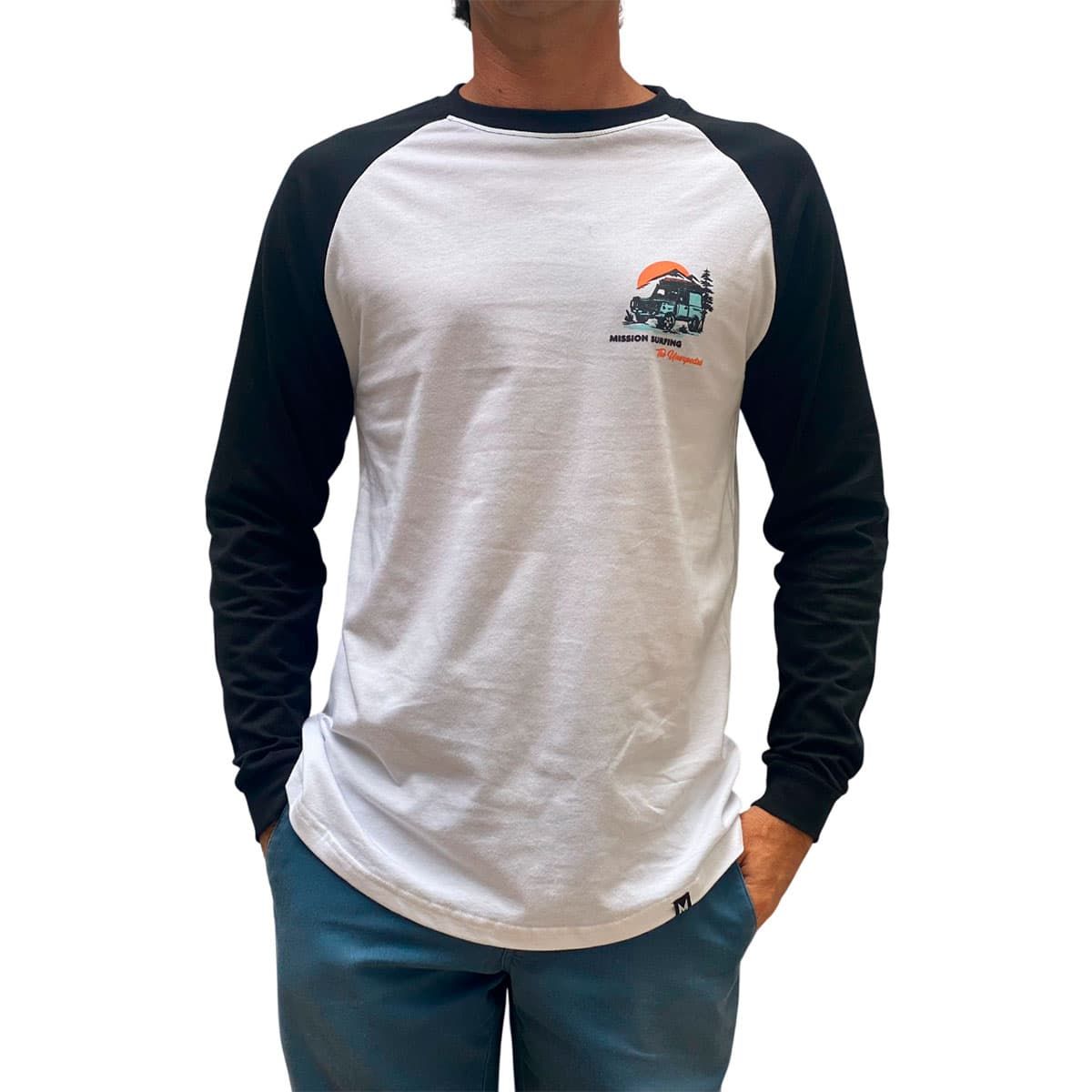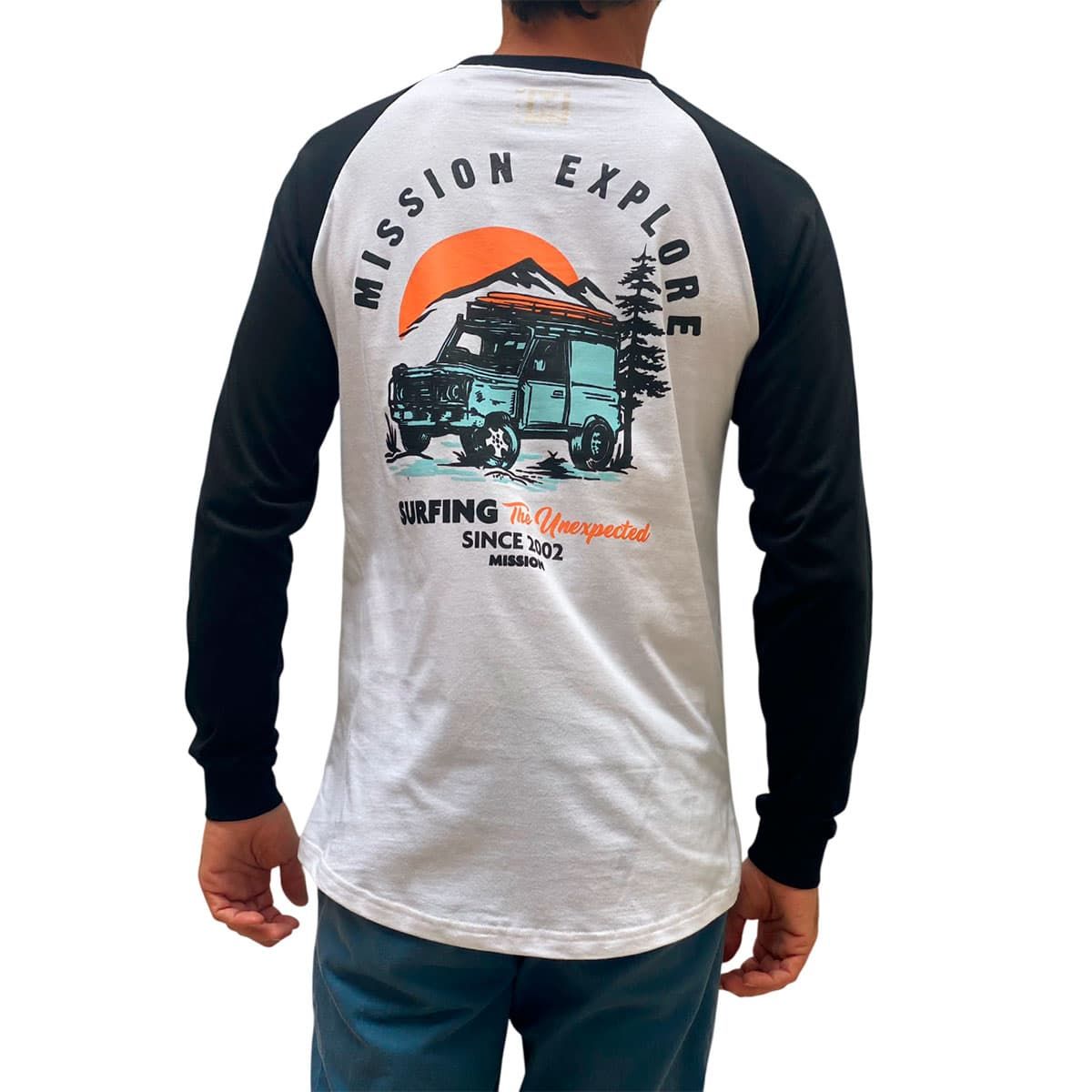 Camiseta de manga larga Mission Ranglan Logo Explore Blanco-Negro Unisex