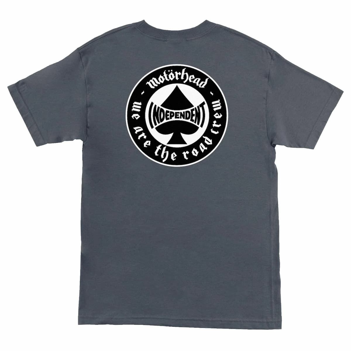 La camiseta Independent x Motörhead Spade en color gris carbón (Charcoal) fusiona dos mundos legendarios: la energía sin concesiones de Motörhead, la banda británica de rock and roll más influyente, y la autenticidad de Independent Trucks, símbolo del skate desde 1978.