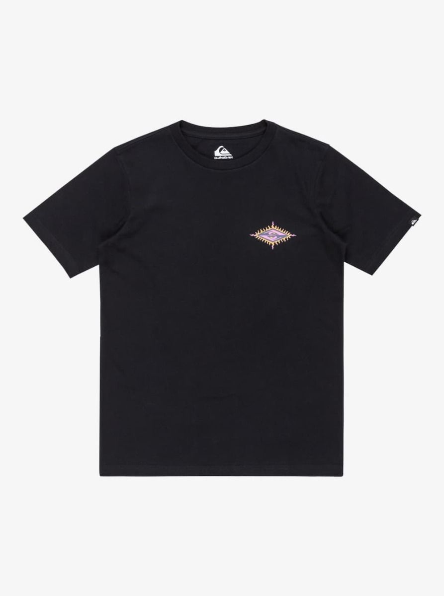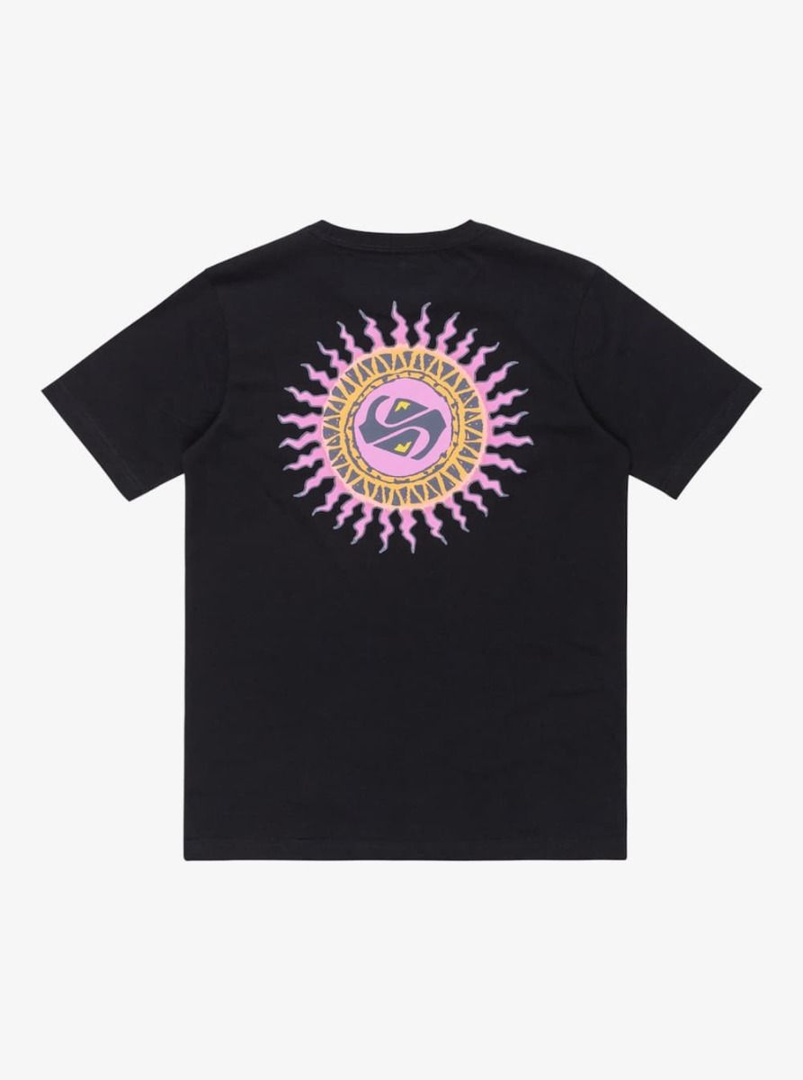 Camiseta para niño (8-16 años) en algodón negro con gráficos Quiksilver de sol en pecho y espalda. Diseño cómodo y vibrante para los días de verano.