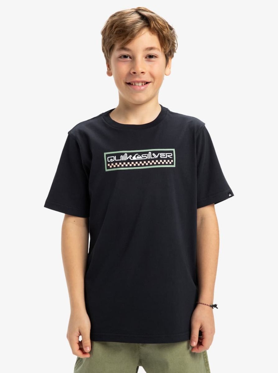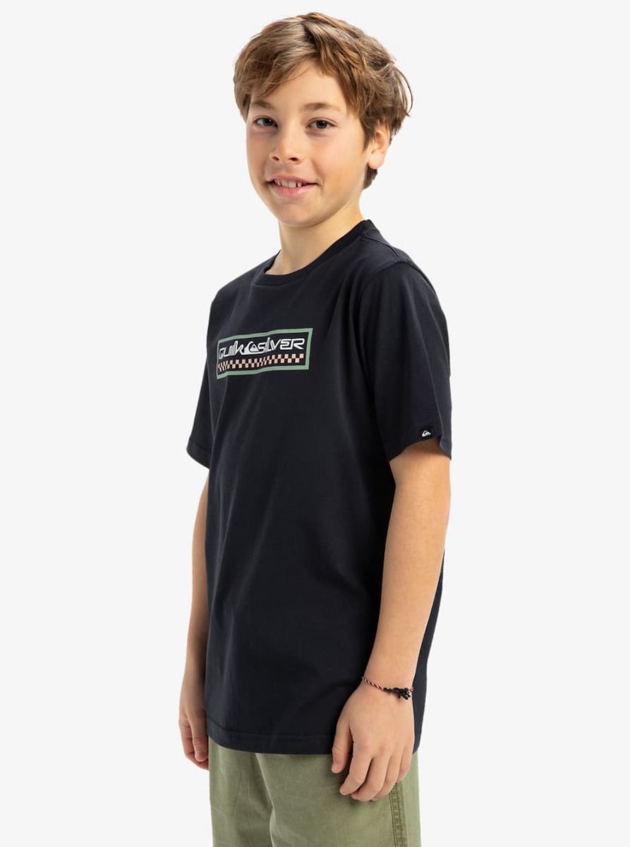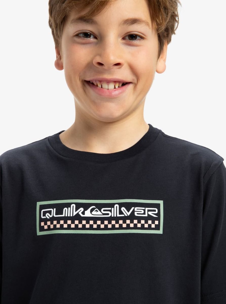 Camiseta de algodón Quiksilver para niño con gráfico serigrafiado en el pecho. Corte cómodo y tejido suave.