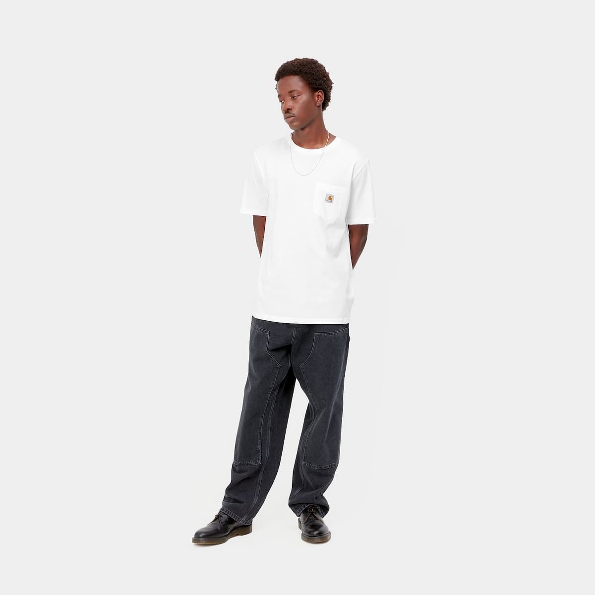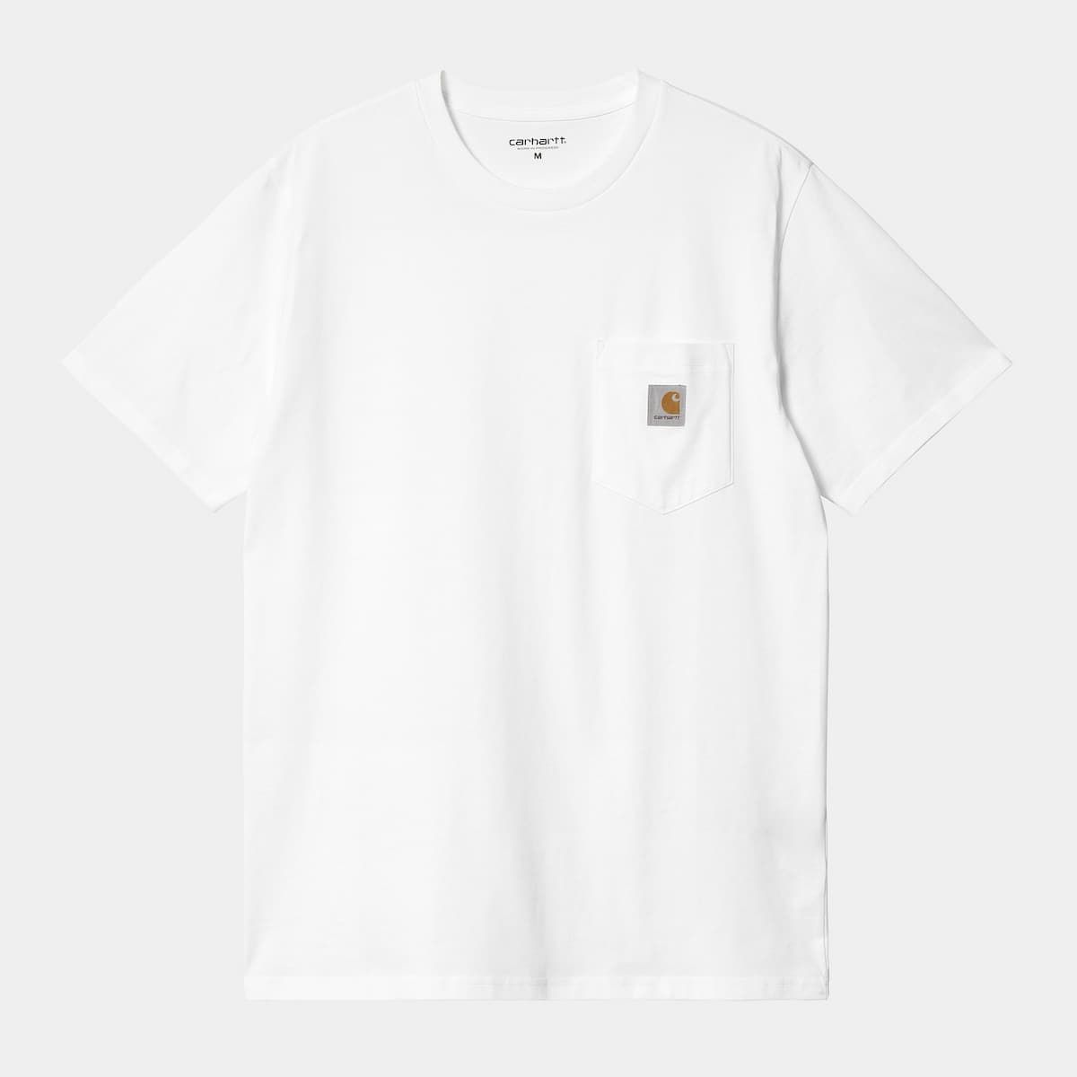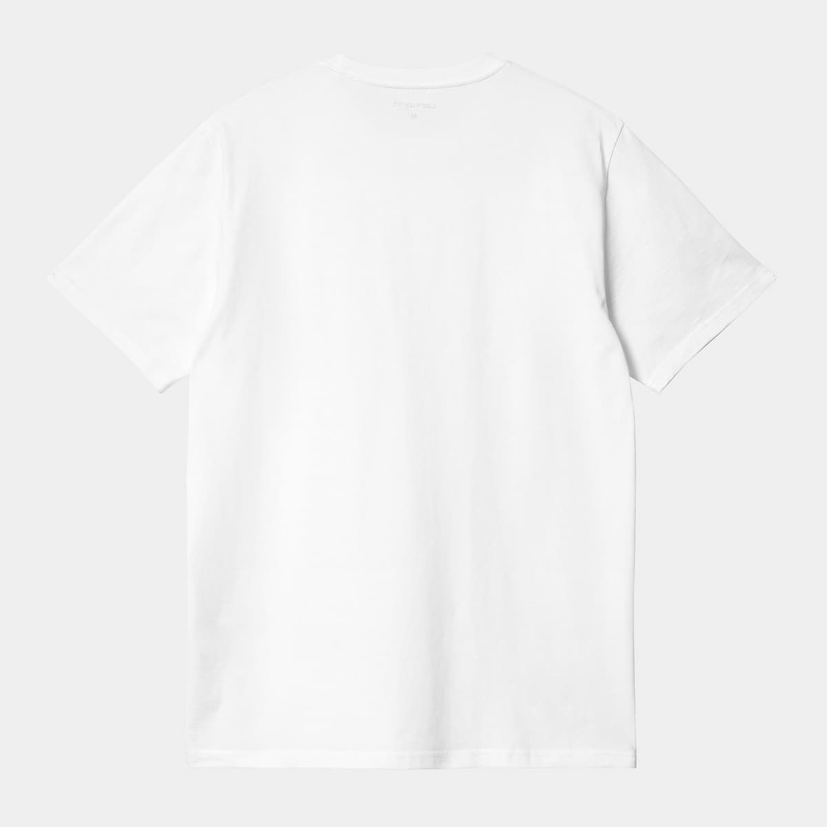 La camiseta de manga corta con bolsillo Pocket T-Shirt blanca para hombre tiene el sello de garantía Carhartt Work In Progress estampado en el cuello interior.