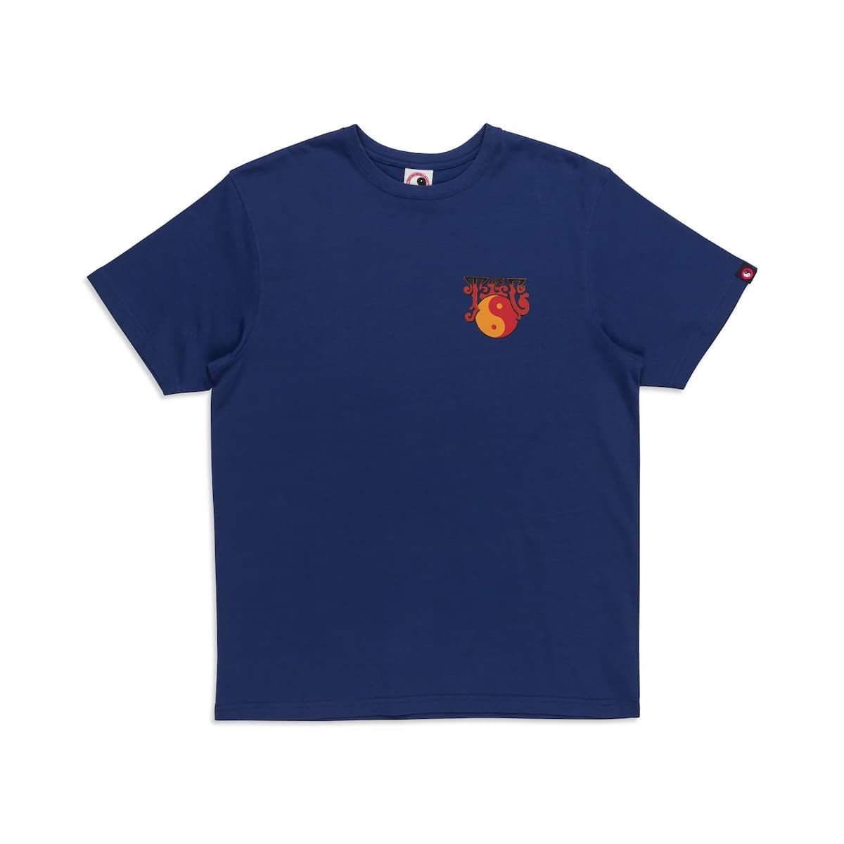 Esta camiseta surfera eco-friendly azul marino, fruto de la colaboración entre T&C Surf Designs y el skater e ilustrador Jon Horner, presenta el logo del Yin Yang de Town and Country junto con ilustraciones retro diseñadas por Horner impresas en el lado izquierdo del pecho y en la espalda, cuello redondo de 15mm, manga corta y una etiqueta con el logo de T&C tejida en la manga izquierda.
