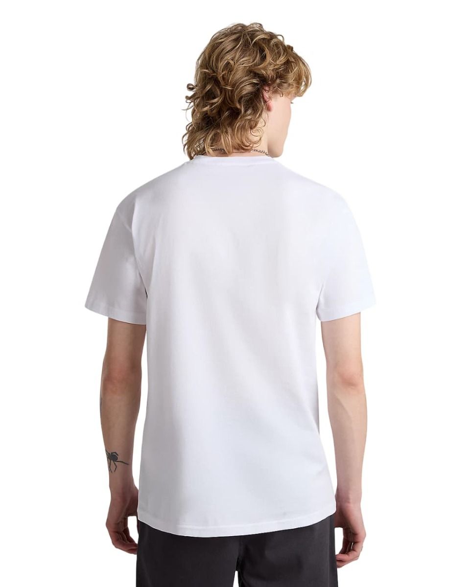 Esta camiseta blanca de ajuste clásico presenta manga corta, cuello redondo, el emblemático logo de Vans impreso en color negro en la parte delantera y un sello de garantía Vans® en el cuello interior.