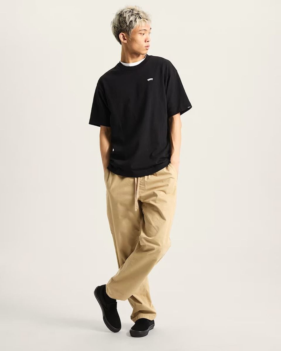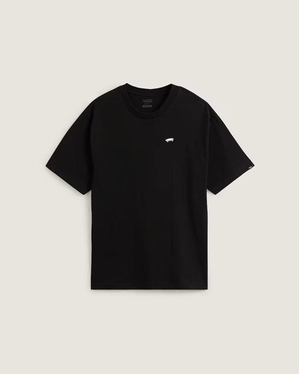 La Vans Salton Loose Fit T-Shirt Negra es una camiseta de manga corta para hombre que combina la comodidad del algodón 100% con un diseño minimalista y auténtico, perfecto para quienes viven la cultura urbana y skater. Su corte holgado te aporta libertad de movimiento, mientras que el logo bordado en forma de monopatín en el pecho rinde homenaje a la historia de Vans dentro del skateboarding.