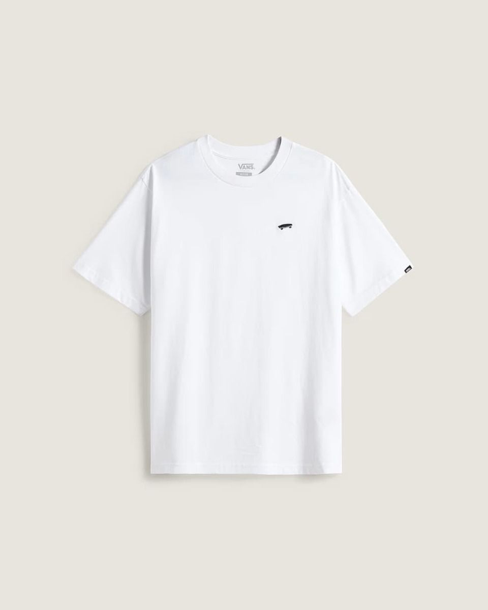 Camiseta Vans Salton blanca para hombre de manga corta y 100% algodón, con corte holgado y logo bordado en homenaje al legado skater.