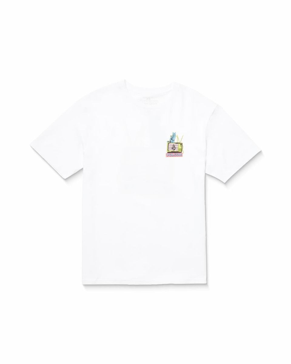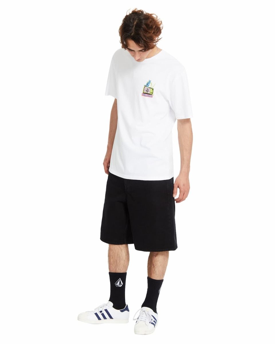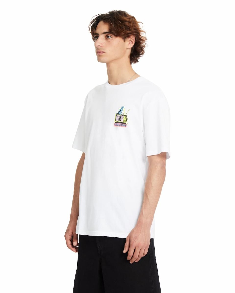 La Camiseta de manga corta Volcom CATV Blanca para hombre es una camiseta divertida que no puede faltar en tu colección de moda urban.
