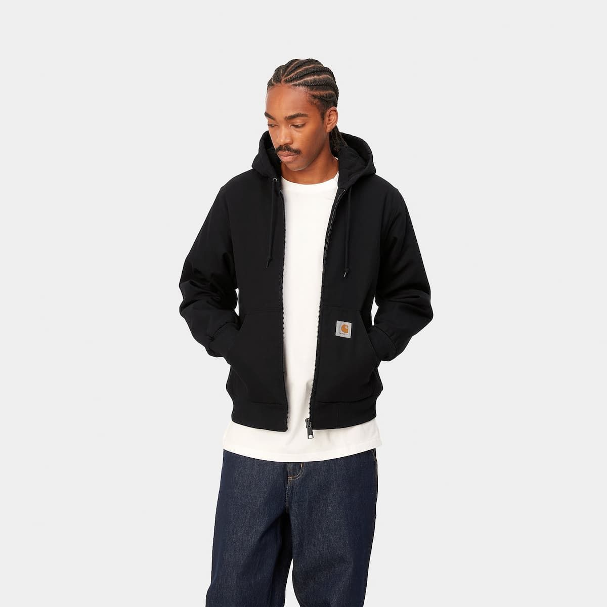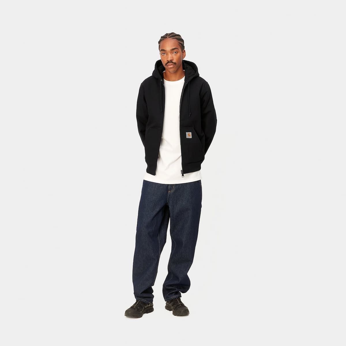 La chaqueta con capucha para hombre Active Jacket (Winter) en negro (Black Rigid) de Carhartt WIP está confeccionada con resistente lona Dearborn Canvas de algodón 100% que repele el agua (385g/m2).