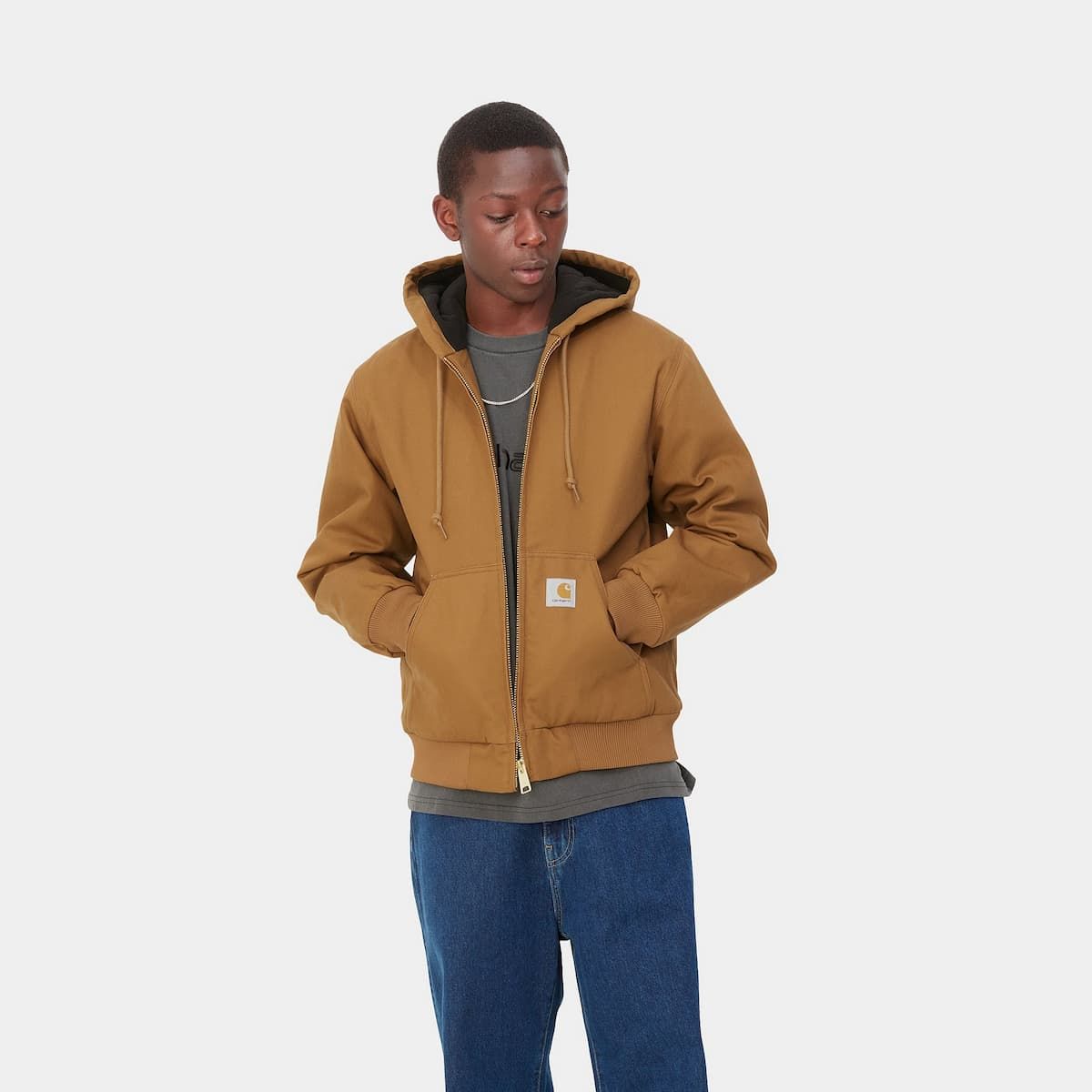 La chaqueta con capucha para hombre Active Jacket (Winter) en marrón (Hamilton Brown-Rigid) de Carhartt WIP está confeccionada con resistente lona Dearborn Canvas de algodón 100% que repele el agua (385g/m2).