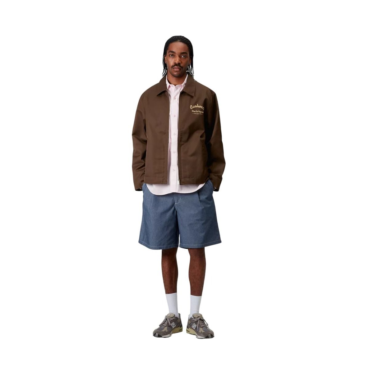 Fabricada en sarga Denison de peso medio (65% poliéster, 35% algodón), ofrece una estructura resistente sin forro, ideal para entretiempo. Su ajuste clásico y detalles gráficos hacen de esta prenda una pieza única dentro de la colección.