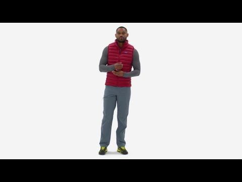Este chaleco verde de plumas, ligero (252g), cortavientos e impermeable para hombre cuenta con diseño plegable que se guarda en el bolsillo interior del pecho, ajuste regular, cierre frontal de cremallera completa con solapa interior para tormentas, cuello alto, protector de barbilla, sisas elásticas de nailon y dobladillo ajustable mediante cordón para sellar el calor, dos bolsillos ribeteados calentadores de manos con cremallera, un bolsillo interior superior con cremallera, dos bolsillos interiores de parche para almacenamiento adicional y un parche con el logo de Patagonia cosido en el lado izquierdo del pecho.
