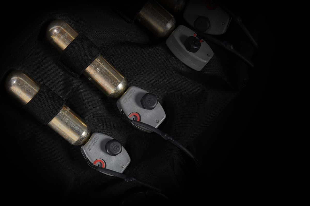 El top de seguridad Highline Pro Airlift rojo viene equipado con cuatro cartuchos de dióxido de Carbono con tiradores de inflado situados estratégicamente que al tirar por ellos activan el CO2, inflando el chaleco y ayudándote así a alcanzar la surperficie más rápido y con menor esfuerzo. Cada cartucho tiene CO2 suficiente para inflar todo el chaleco, por lo que puedes inflarlo hasta en cuatro ocasiones cuando los cartuchos están totalmente cargados.