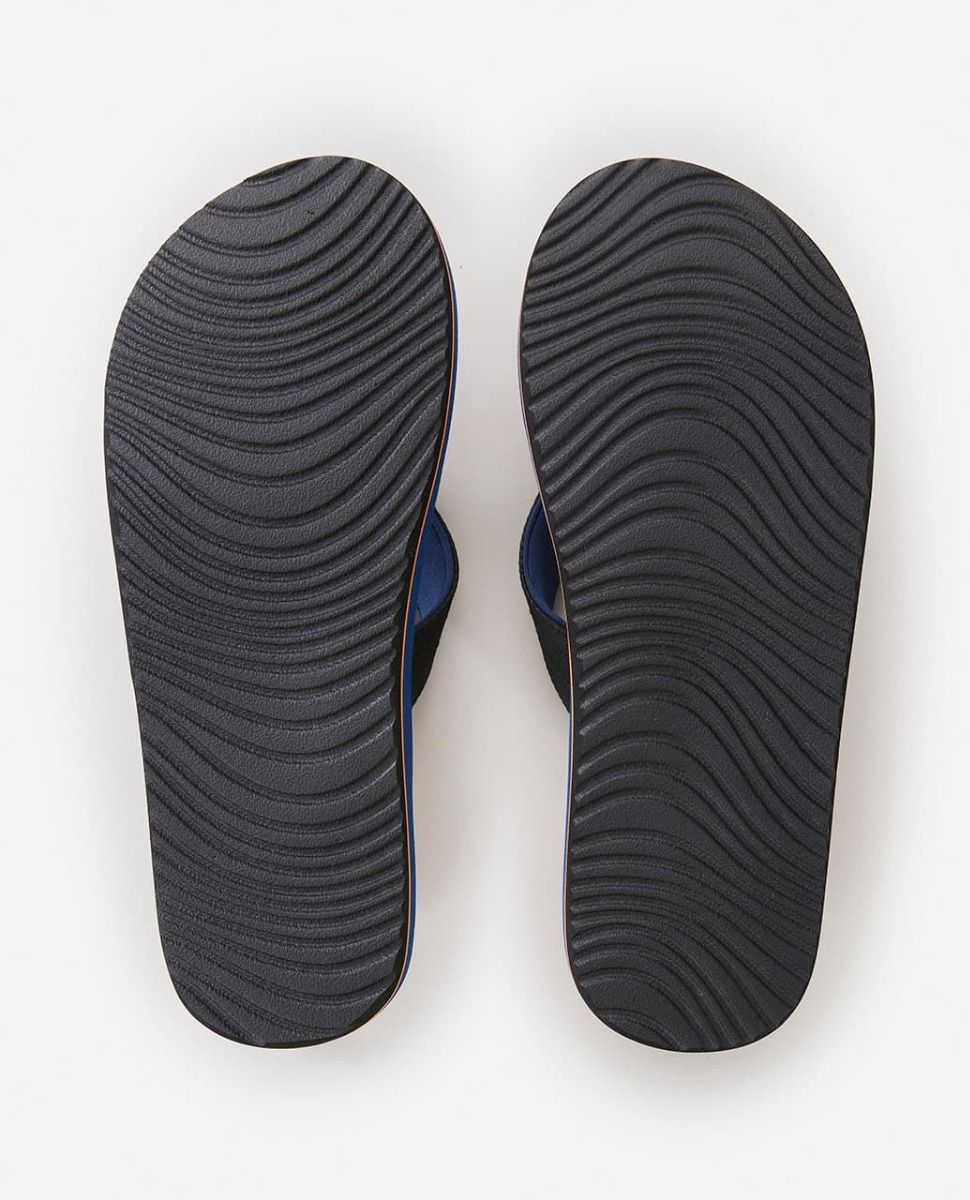 Estas sandalias playeras de dedo azules y naranjas cuentan con correa de nobuk sintético con forro suave y acolchado, plantilla de EVA con varias densidades para mayor comodidad, suela exterior de goma anti-deslizante para lograr más tracción, el logo de Rip Curl serigrafiado en la plantilla, junto con una etiqueta de la marca tejida en la correa.
