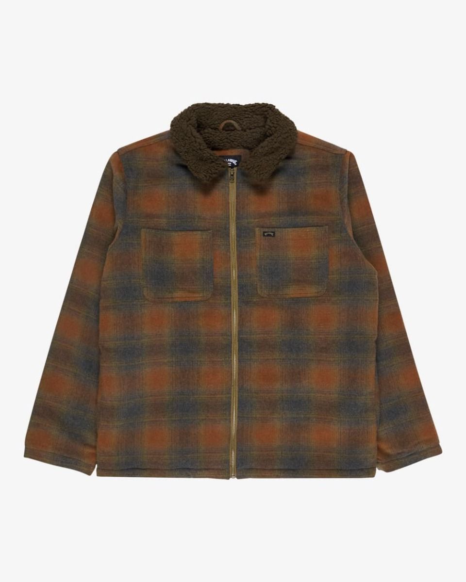 Chaqueta Billabong Hills Sherpa para hombre con forro y cuello de sherpa cálido en diseño a cuadros.