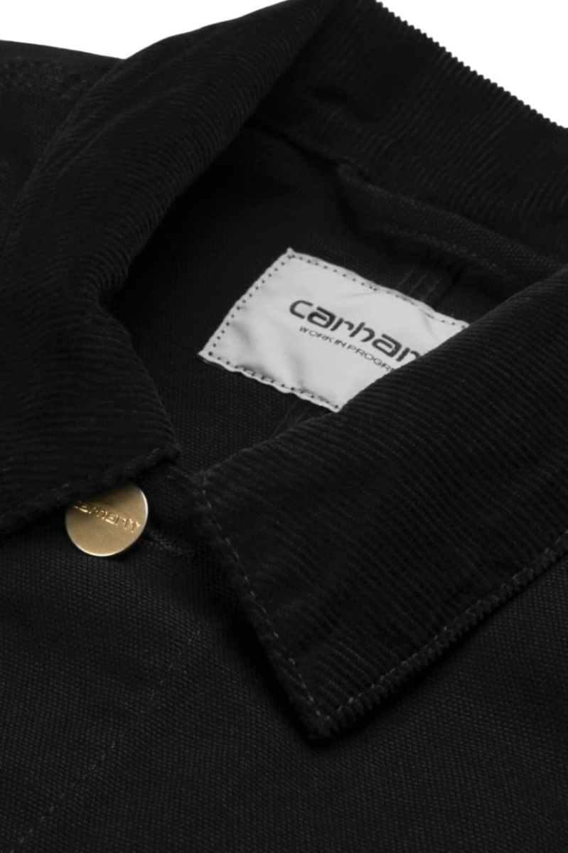 Con su ajuste regular, cuello de pana y cierre frontal con botones metálicos, el abrigo Carhartt Michigan Coat negro se distingue por su carácter sobrio y auténtico. Incorpora cuatro bolsillos de parche en la parte frontal que refuerzan su espíritu utilitario y un acabado lavado (rinsed) que aporta una textura más suave y un aspecto desgastado sutil.