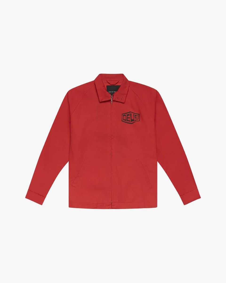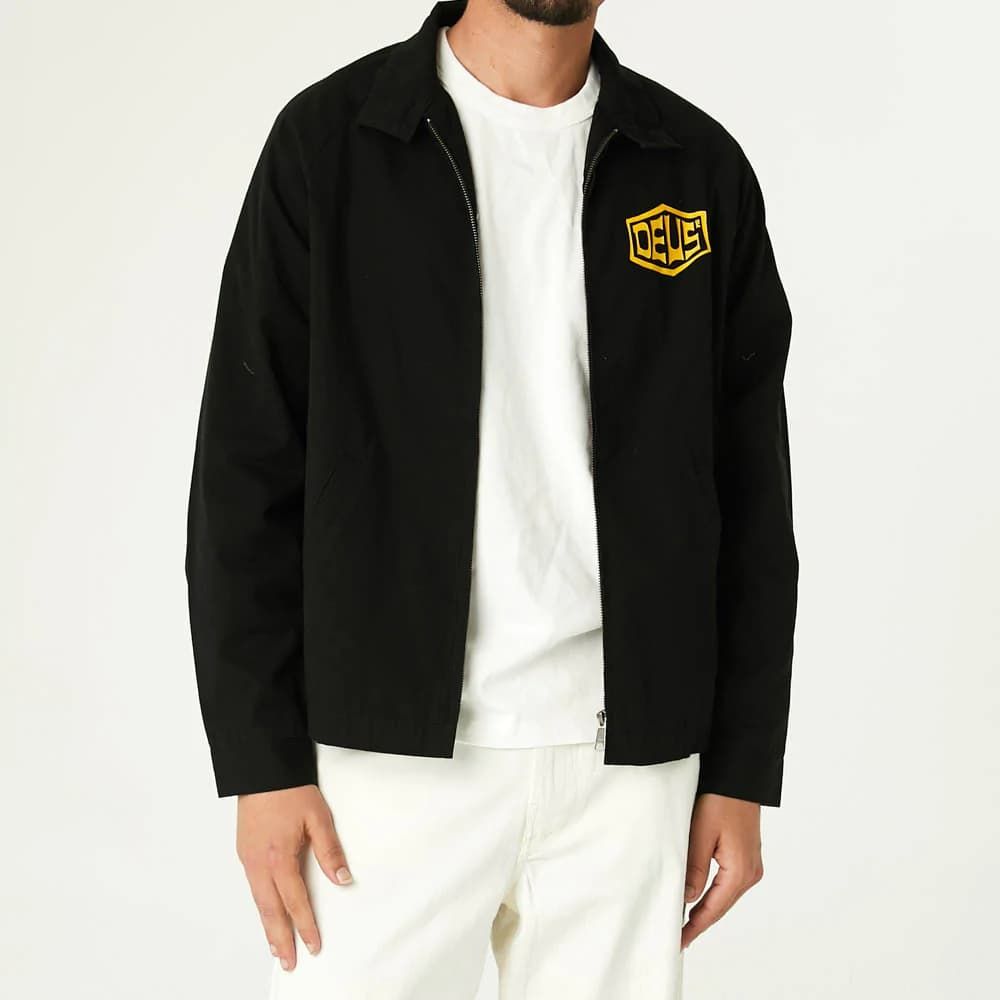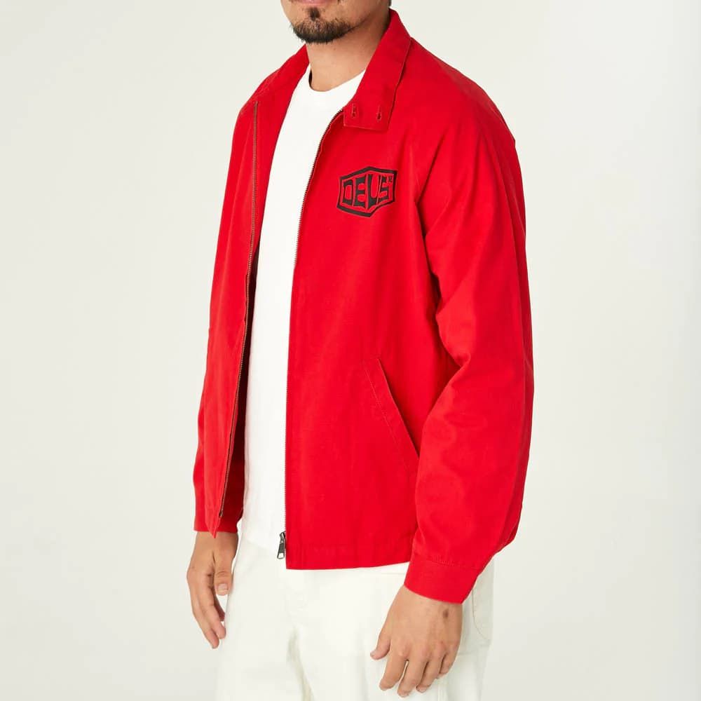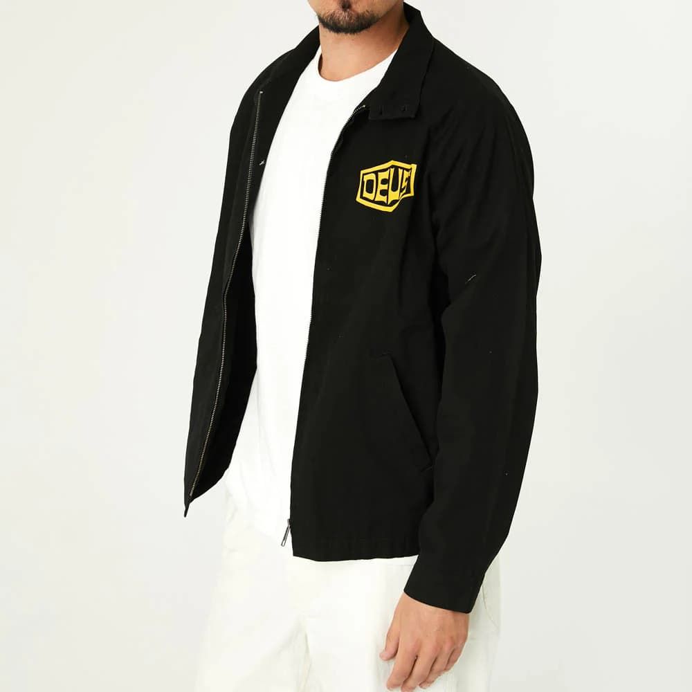 Esta chaqueta de ajuste relajado cuenta con cuello subido, cierre frontal de cremallera completa bidireccional, bolsillos laterales, el logo de Deus estampado en el pecho izquierdo y una impresión trasera con la leyenda “Deus X M Customs Los Ángeles”.