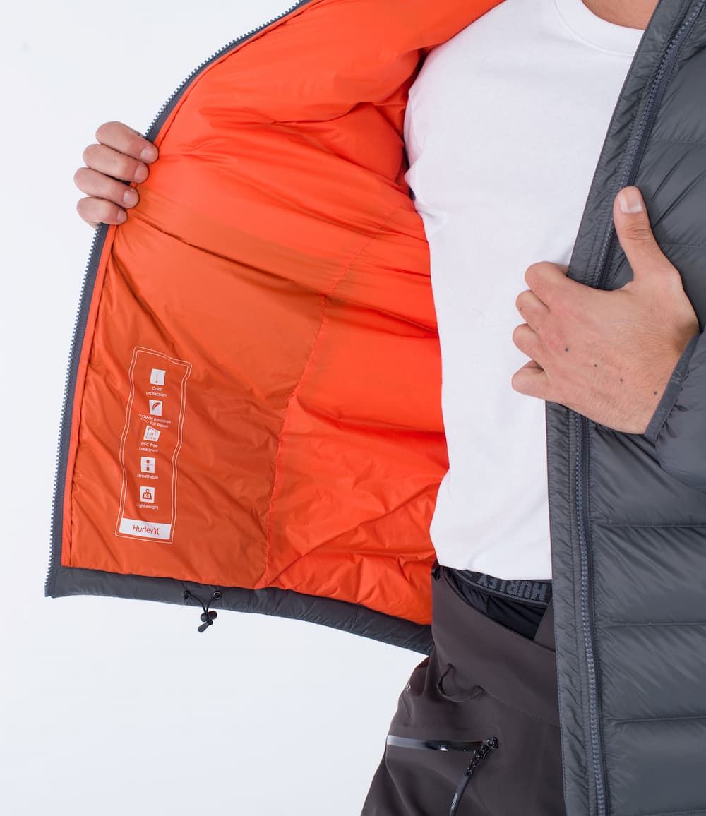 Chaqueta acolchada ligera técnica para hombre con aislamiento térmico 600FP y tratamiento DWR sin PFC. Hurley.