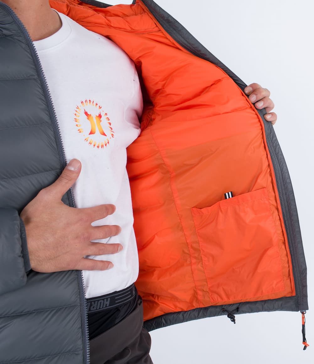 Gracias a su relleno térmico con 600 Fill Power, esta chaqueta de invierno te ofrece una excelente relación peso-abrigo. Su tejido exterior 100% nailon con tratamiento DWR libre de PFC's repele la humedad y protege del viento sin perder transpirabilidad. El contraste interior en naranja vivo no solo aporta personalidad, sino también mayor visibilidad en exteriores.