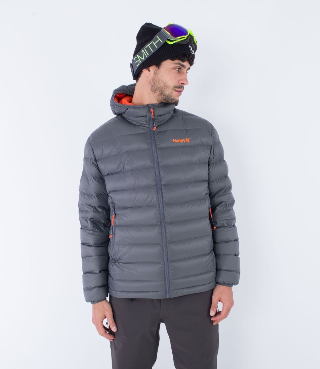 Chaqueta impermeable con capucha Hurley Cayuga Puffer en color gris oscuro para hombre