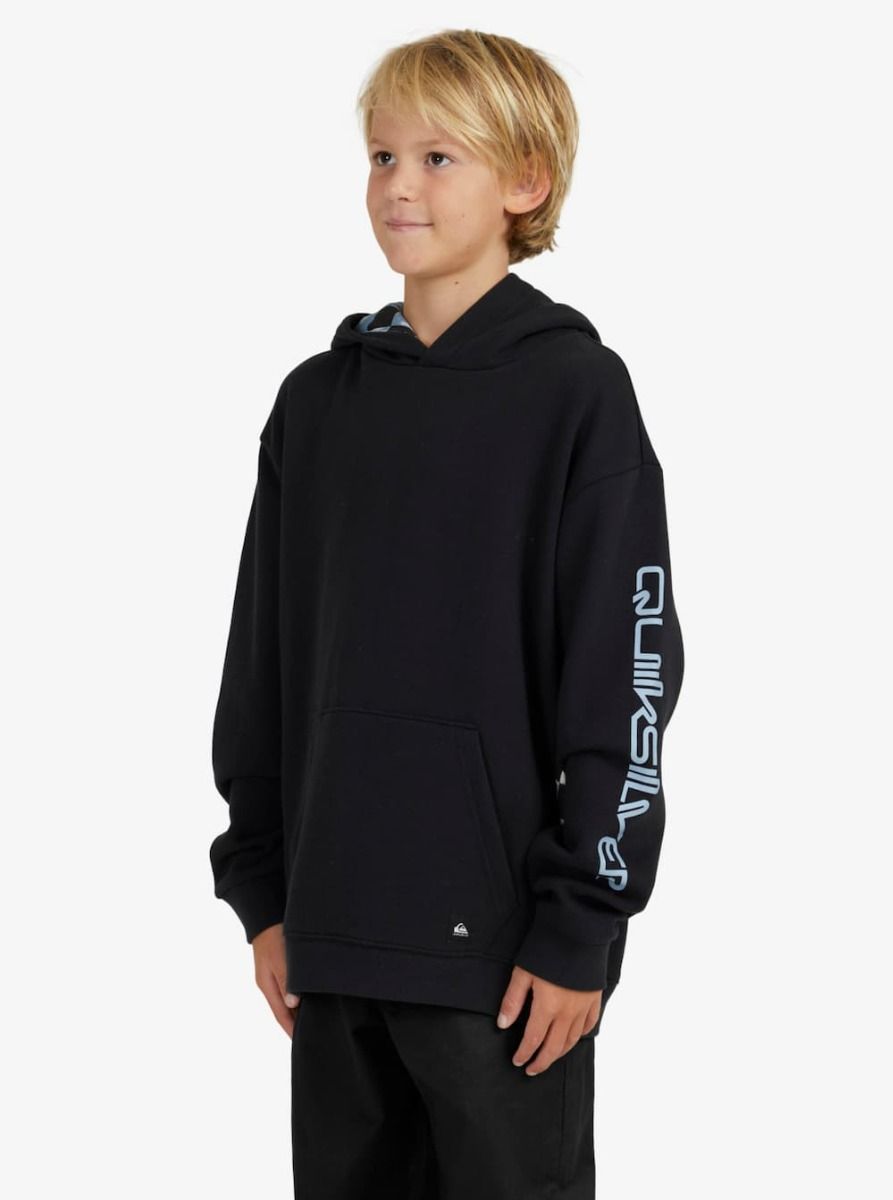Este hoodie de corte cuadrado cuenta con tejido interior cepillado, acabado de terciopelo, capucha forrada y con abertura cruzada, punto canalé en puños y dobladillo inferior, un amplio bolsillo tipo canguro, estampado checkerboard en los laterales e interior de la capucha, estampado Quiksilver en la manga izquierda y una discreta etiqueta de tela con el logo de la marca tejida en el bolsillo.