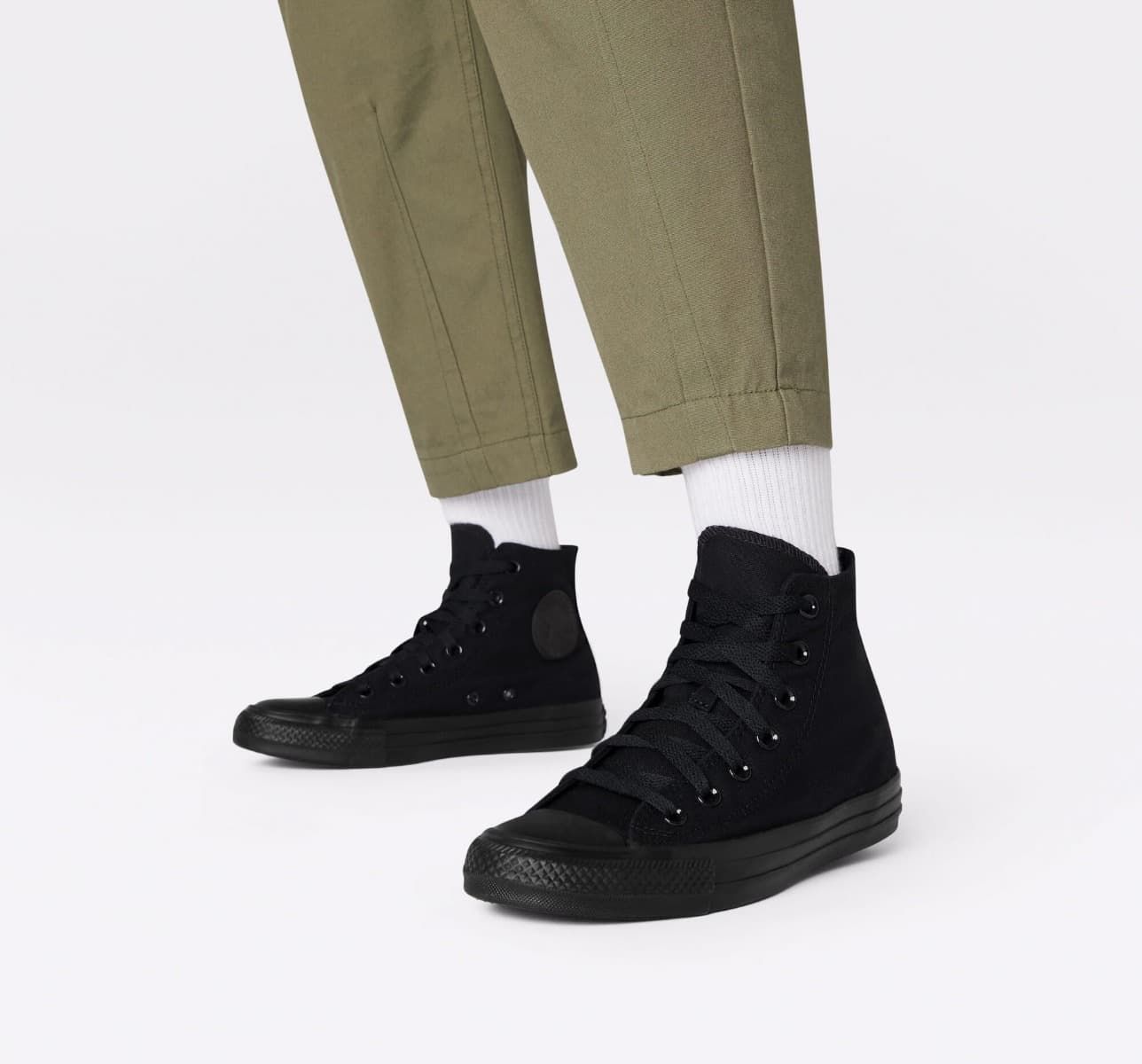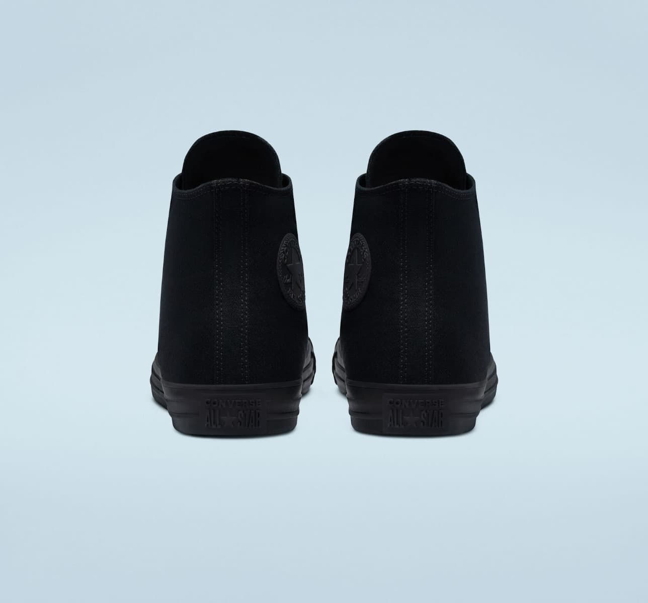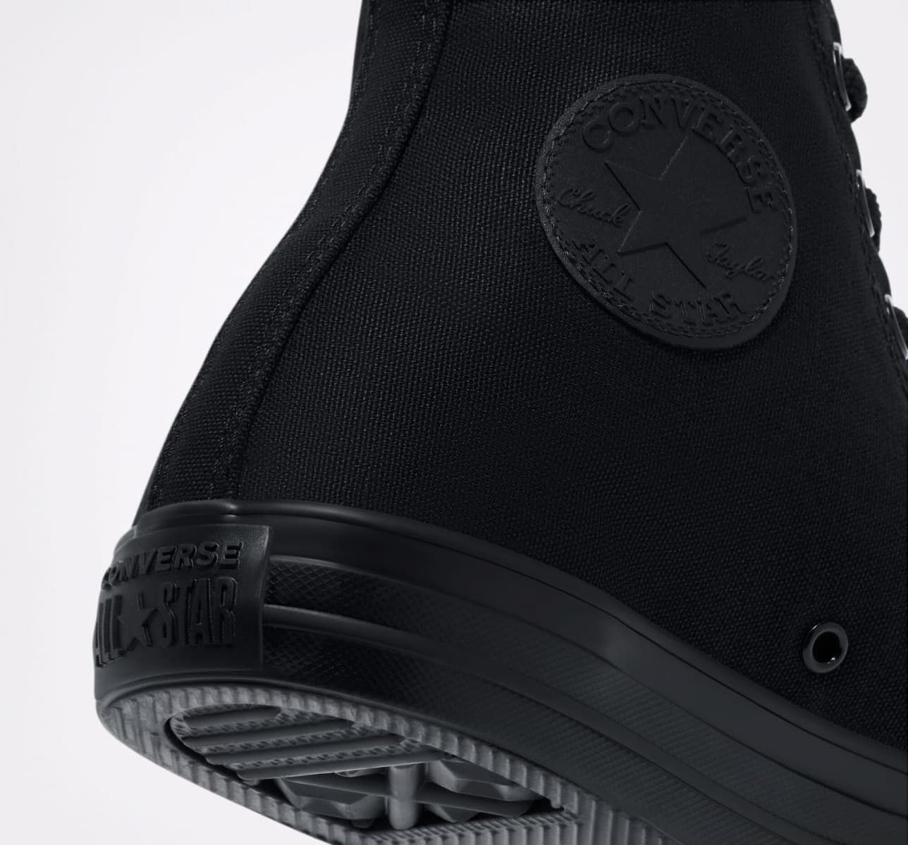 Las zapatillas Chuck Taylor All Star Classic High Top completamente negras (Monochrome Black) de Converse están confeccionadas con lona.