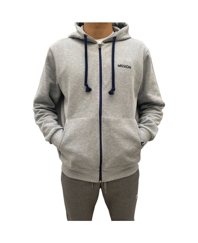 Este zip hoodie cuenta con interior de forro polar, capucha ajustable mediante cordón, cierre frontal de cremallera, bolsillos frontales y una discreta etiqueta con el logo de Mission tejida en el bolsillo izquierdo.