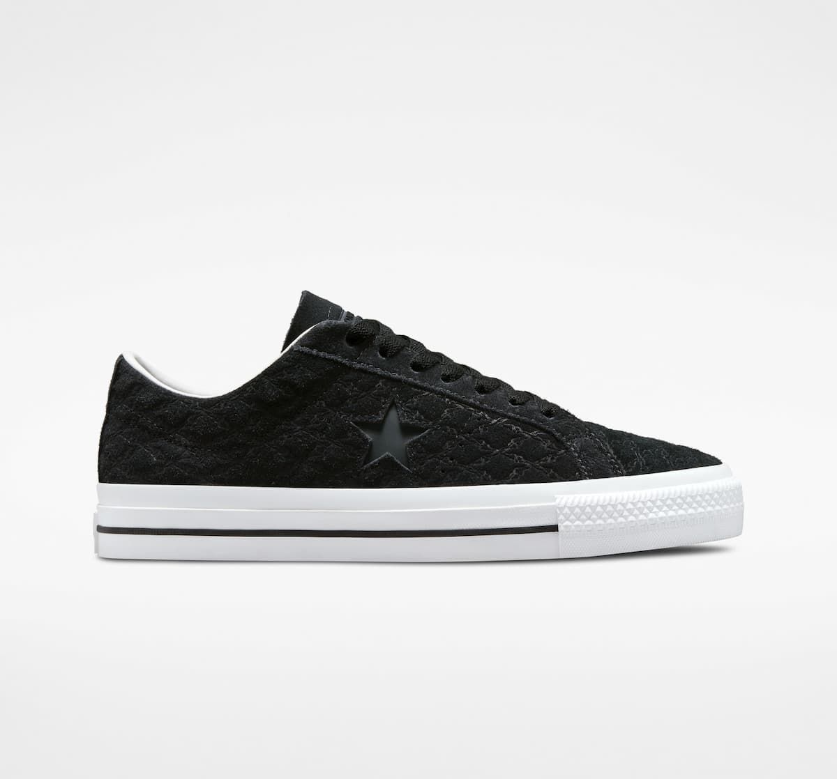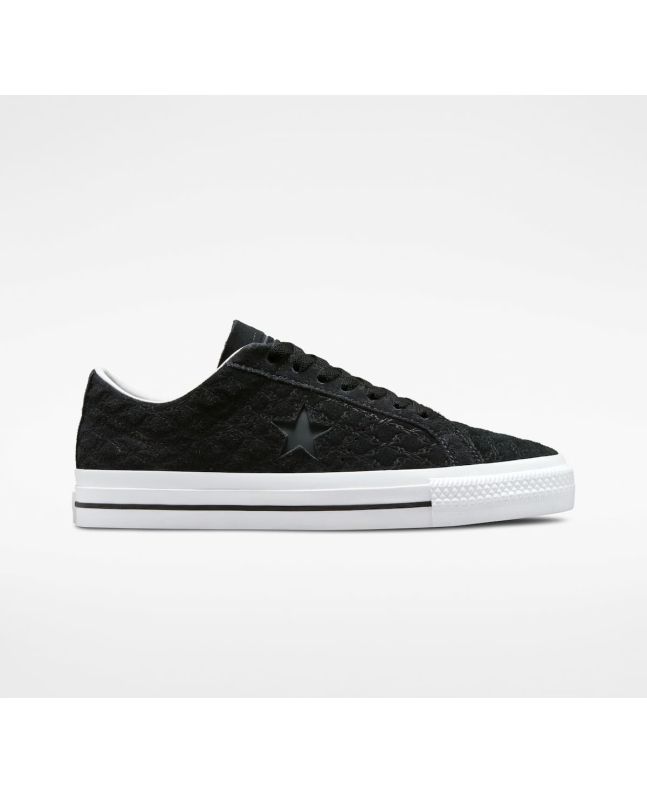 Las zapatillas de skate para hombre One Star Pro Bones en negro y blanco (Black-Black-White) de Converse están confeccionadas con ante y caucho.